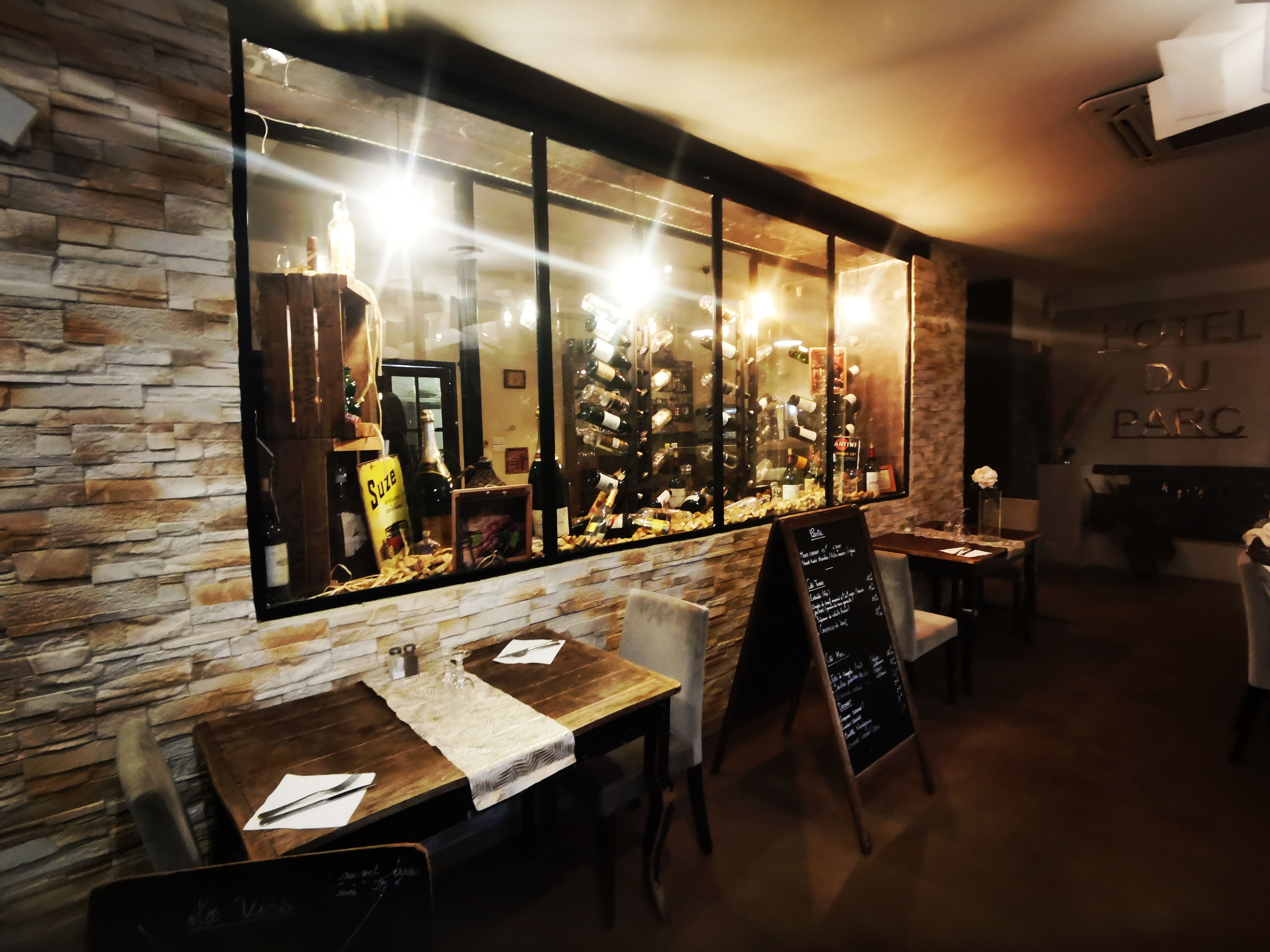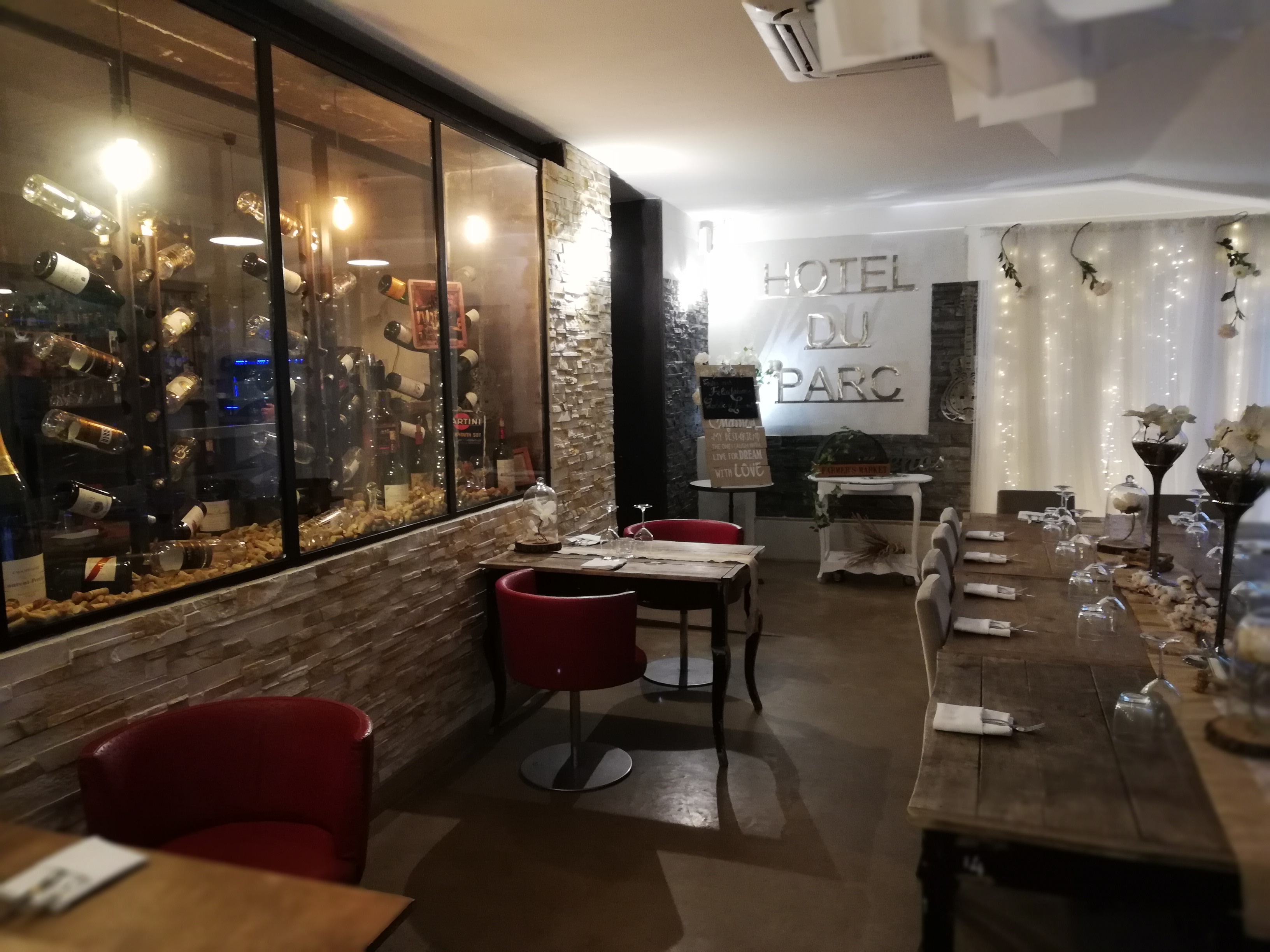 Hotel du parc a réouvert récemment ouvert. A la lecture de la carte sur l ardoise un choix variée et simple de plats entre viande (boeuf veau magret) et poissons (daurade seiches)de qualité montre une cuisine faite maison avec des produits frais. le cadre rustique et chic de la salle donne une atmosphère agréable le midi vous pourrez profitez d un menu business a 22 euros excellent rapport qualité prix. vivement cet été pour tester les grillades sur la terrasse. vous avez un show room des tenues confectionnées par la propriétaire . bonne continuation pour ce début prometteur.
