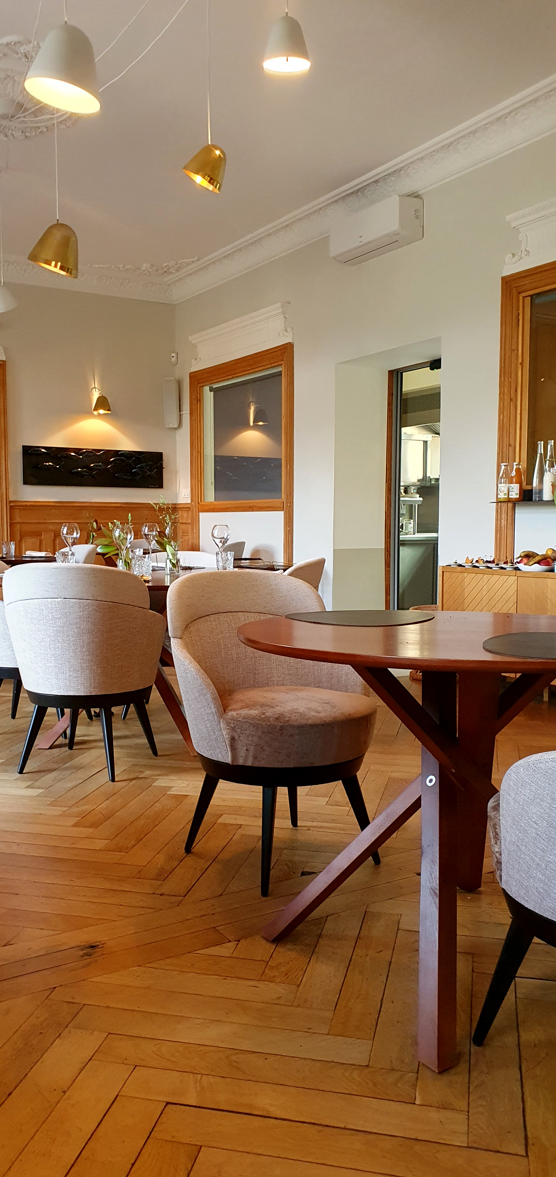 Une parenthèse délicieuse, une cuisine remplie de saveurs d’une grande finesse et d’originalité, des végétaux sublimés, des produits de qualité. Nous avons adoré l’originalité du sommelier, qui a su nous faire découvrir des vins très inattendus. L’ensemble du personnel est adorable et très professionnel nous avons vraiment apprécié, la cuisine ouverte et la joie de l’équipe. Hôtel très classe, la bâtisse garde son authenticité, avec des notes contemporaines de grand confort. Nous recommandons à 100 %