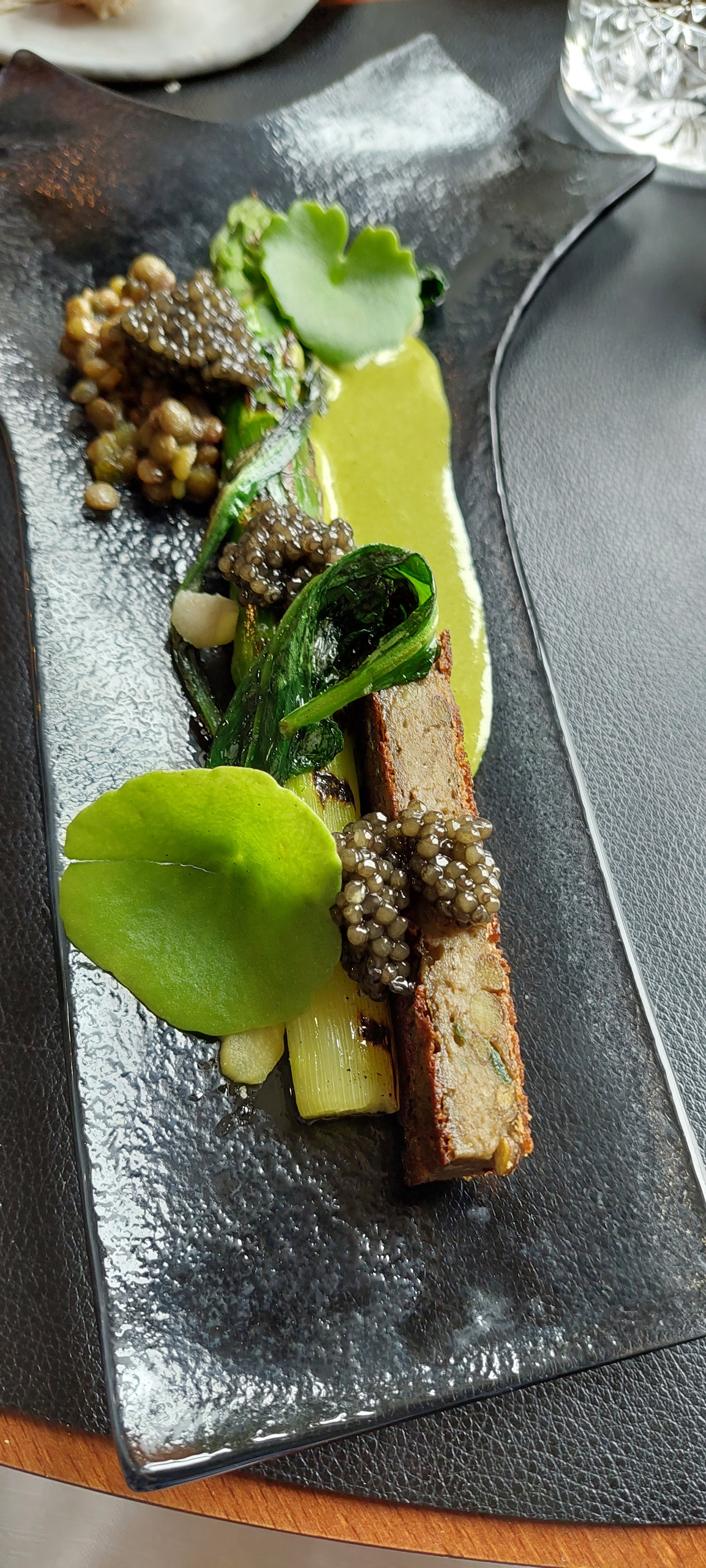 Ce menu 7 plats accompagné des 4 vins en harmonie avec les mets étaient un excellent choix de la part de la sommelière et de belle découverte pour nous . Le menu basé sur le végétal nous a bluffé.nous nous sommes régalés. Tout le personnel est aux petits soins Et le cadre est très sympa. Nous aurions juste aimé que le chef vienne nous faire un petit coucou.