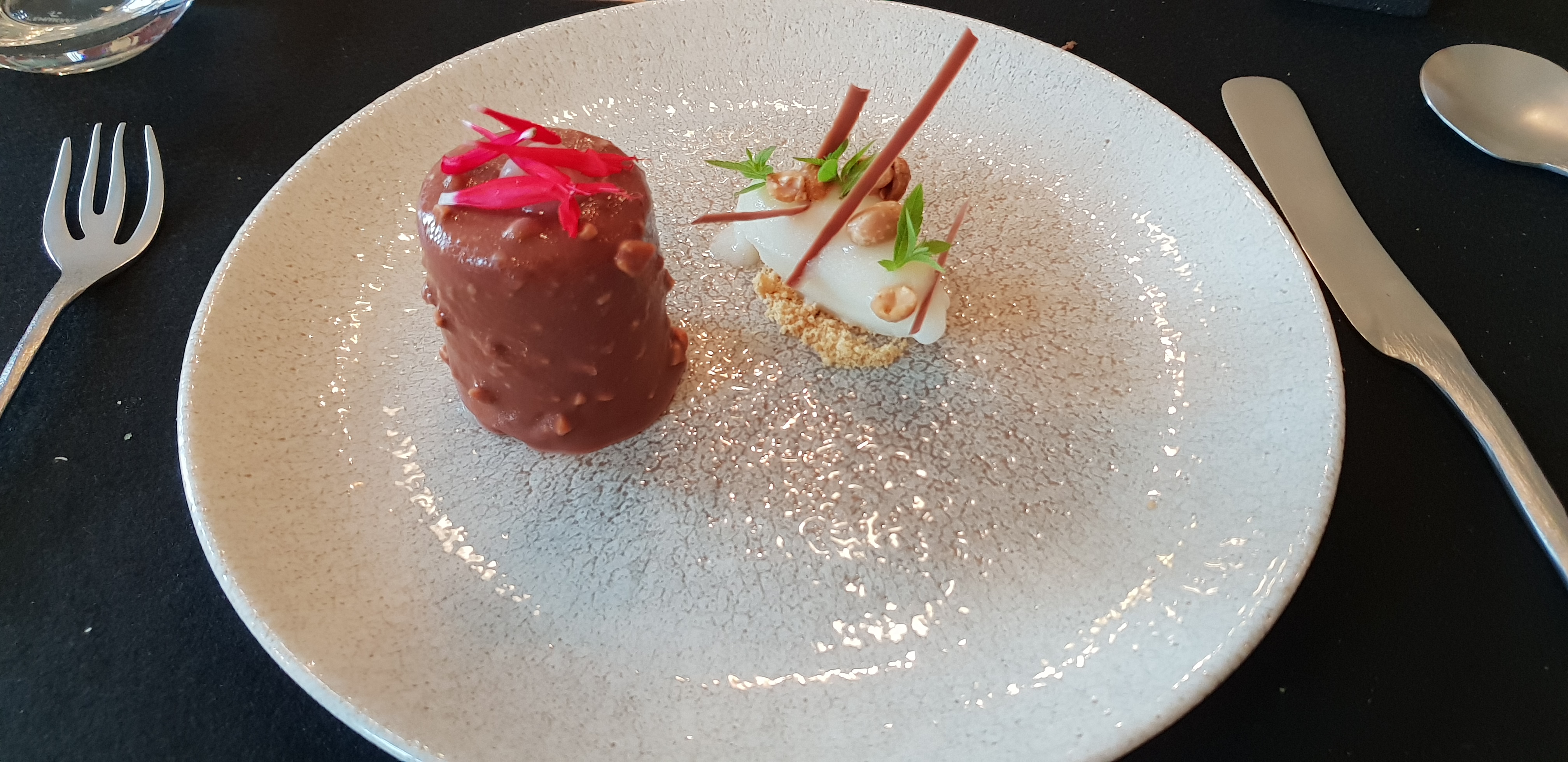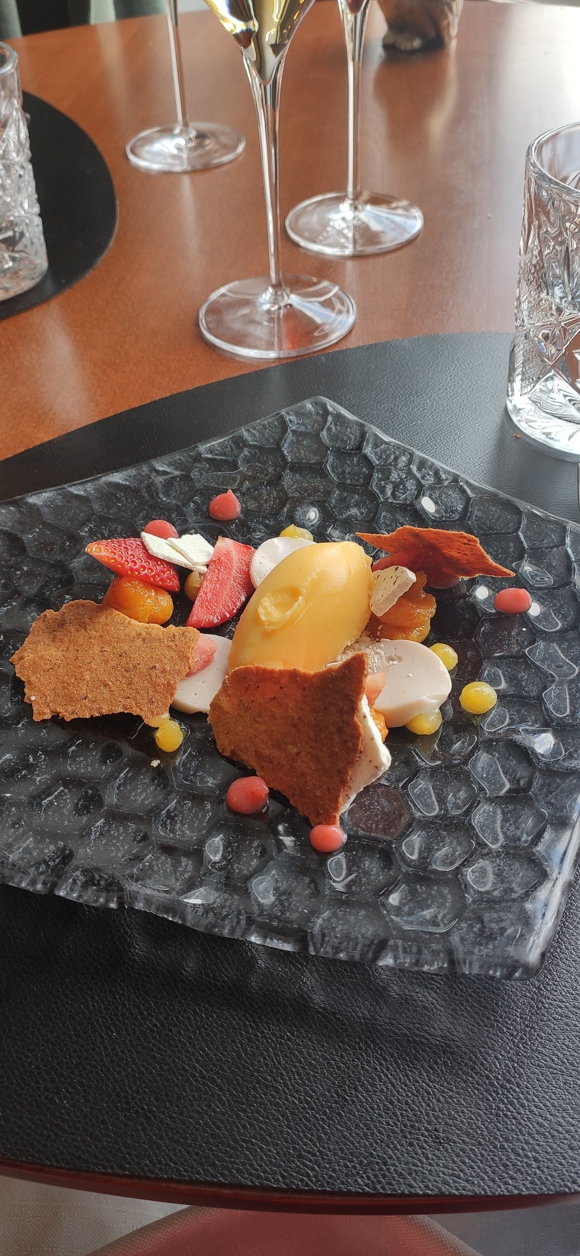 Un repas magnifique.Des assiettes très belles avec une présentation soignée. Des plats délicieux , des mélanges de saveurs sensationnels. L'accord mets vins très bien pensé avec un chef sommelier très compétent qui a su dénicher des vins s'accordant parfaitement aux plats servis. Il en est de même pour l'accord mets et thés. Nous avons beaucoup apprécié que l'on nous prépare une assiette de melon pour remplacer le fromage que nous n'aimions pas.
