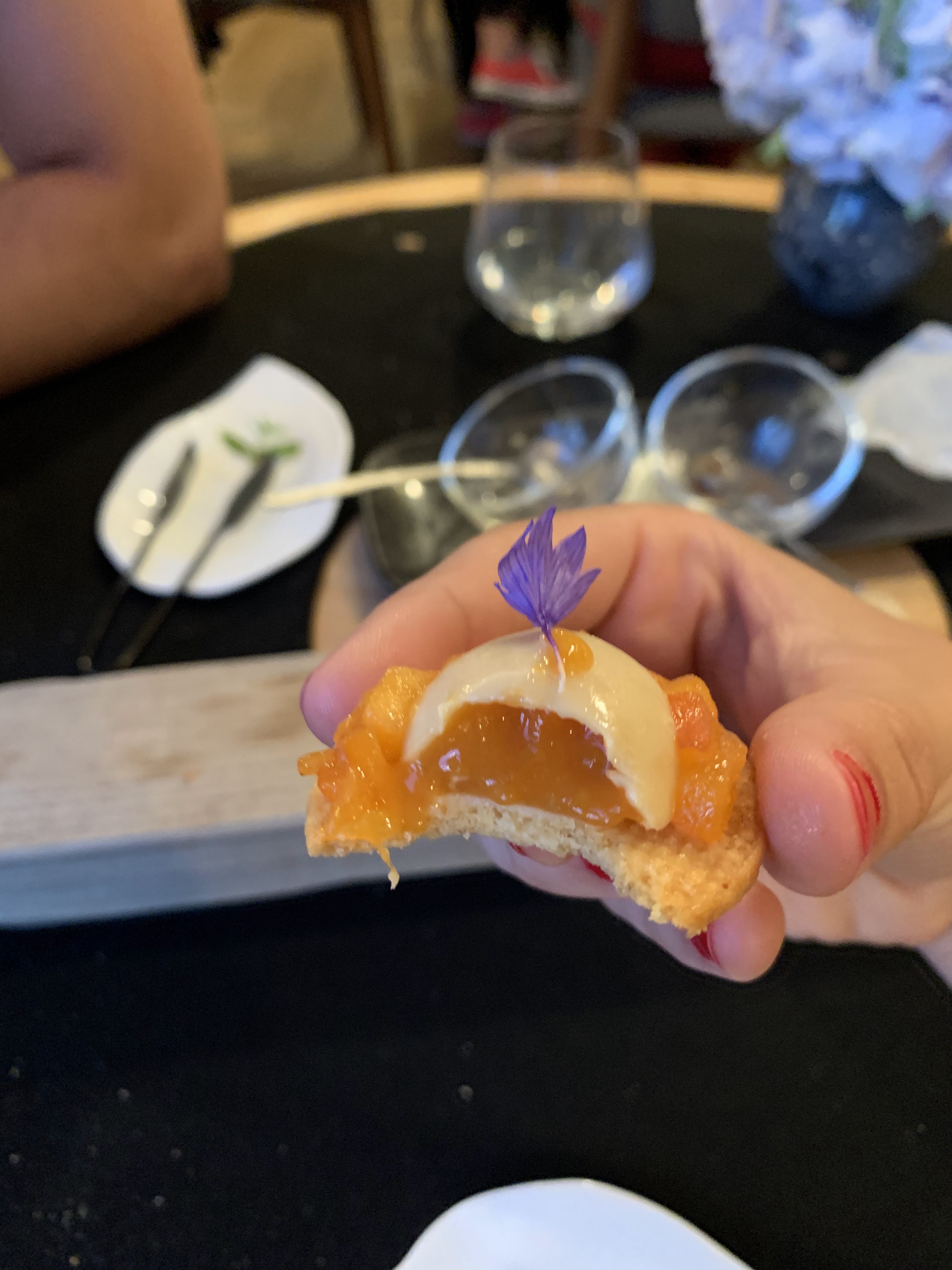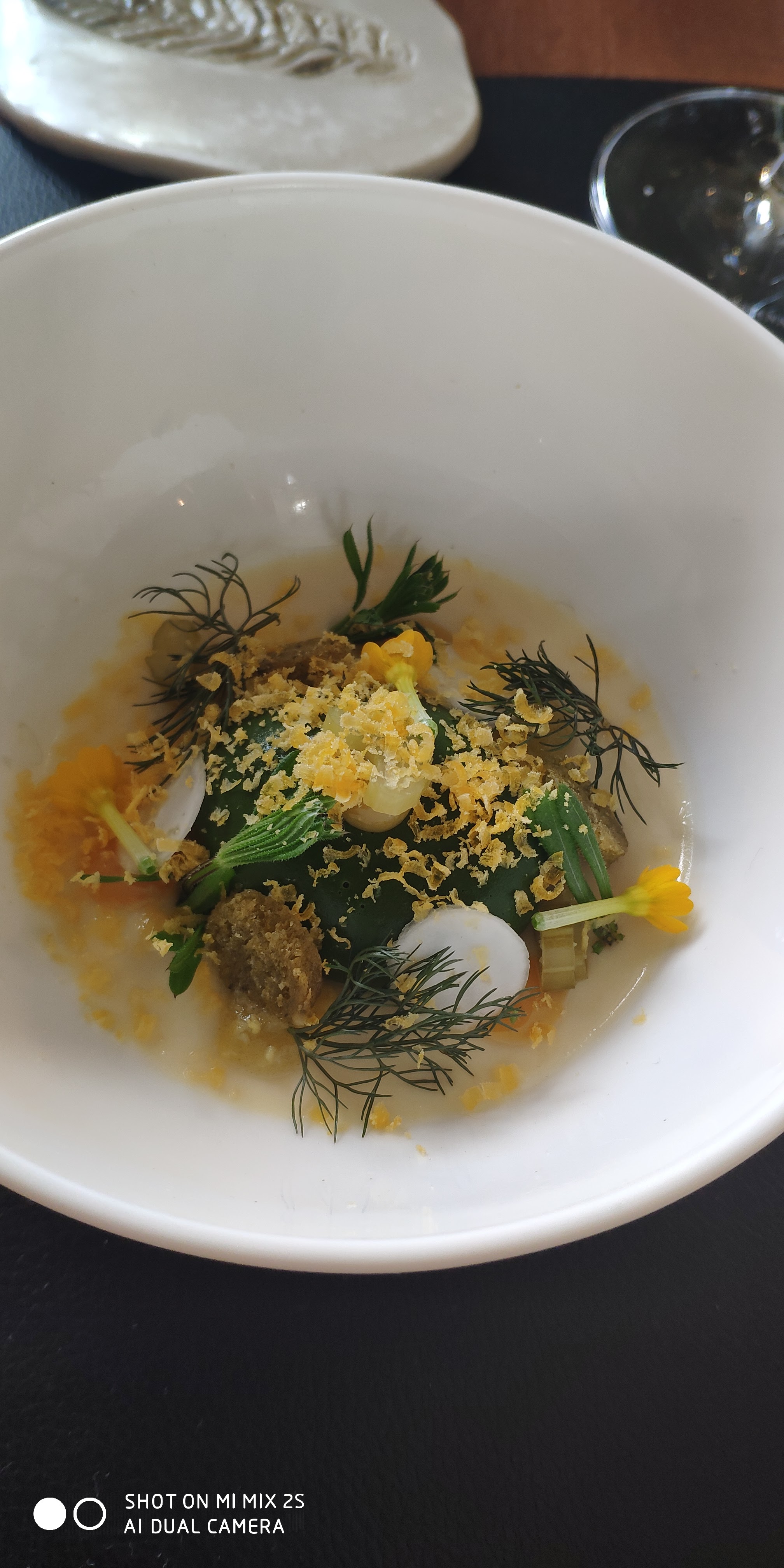 Cadre très agréable. Service inégal en fonction des serveurs. Plats très bien présentés, originaux mais certains sans grand interêt dans la formule 13 plats qui s’avère finalement un peu trop copieuse et longue. On n’en voit plus le bout et les derniers plats sont plus une contrainte qu’un plaisir. A refaire j’opterais pour la formule 10 plats. L’accord avec le thé est une idée originale et une bonne solution pour ceux qui ne boivent pas ou doivent conduire. En résumé même s’il les défauts sont présents, l’expérience vaut le coup