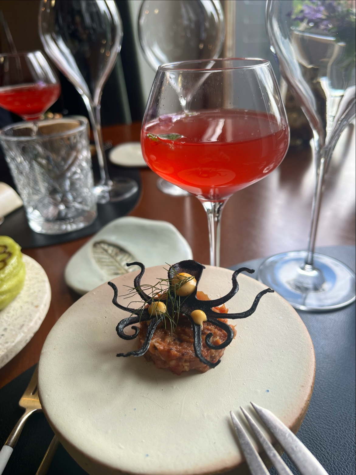 Très bel endroit, aménagé et décoré avec soin. Comme cité sur d'autres avis, le sommelier théâtralise beaucoup, je crois que c'est sa personnalité. Très bons plats, fins. Juste un ressenti personnel, l'option multi services (8 ou 10), c'est peut être trop ? J'ai un peu de mal à recontacter les souvenirs gustatifs, dommage.