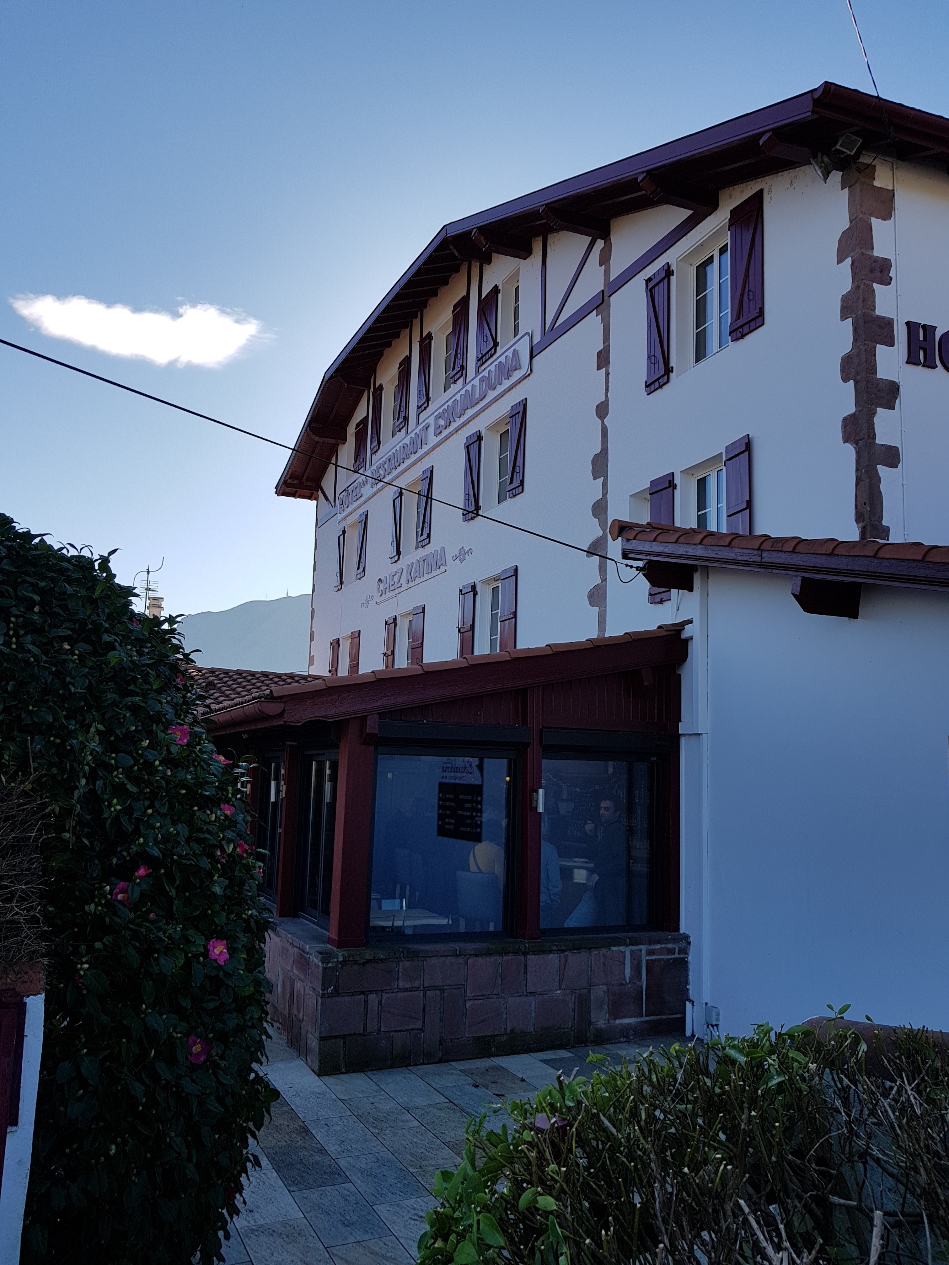 Bâtisse très représentative du Pays Basque extérieurement et intérieurement. Choix de menus et surtout excellente cuisine, plats copieux Pour finir, Personnel à l'écoute et très agréable.
