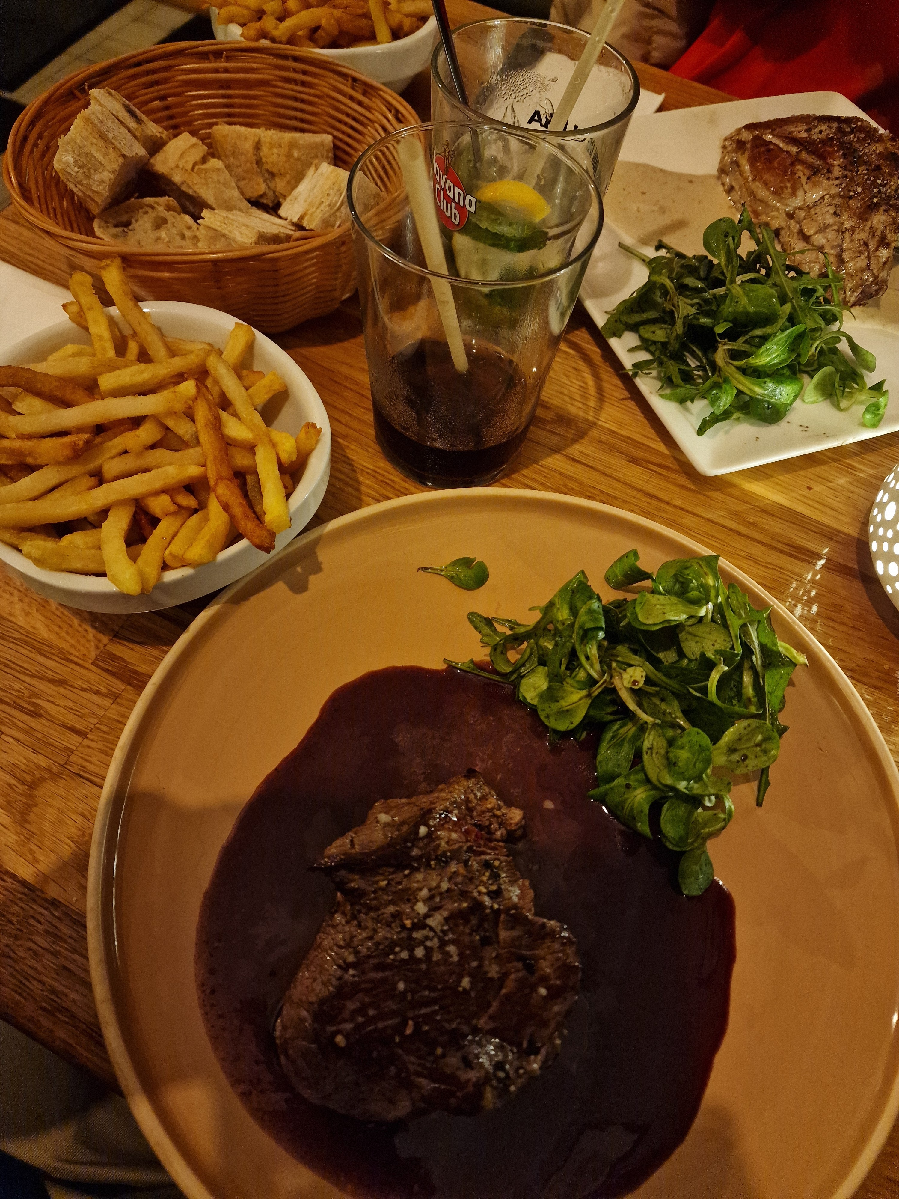 Meilleures frites que j'ai jamais goûtées, serveurs sympas. Par contre spritz coupé à l'eau plate...