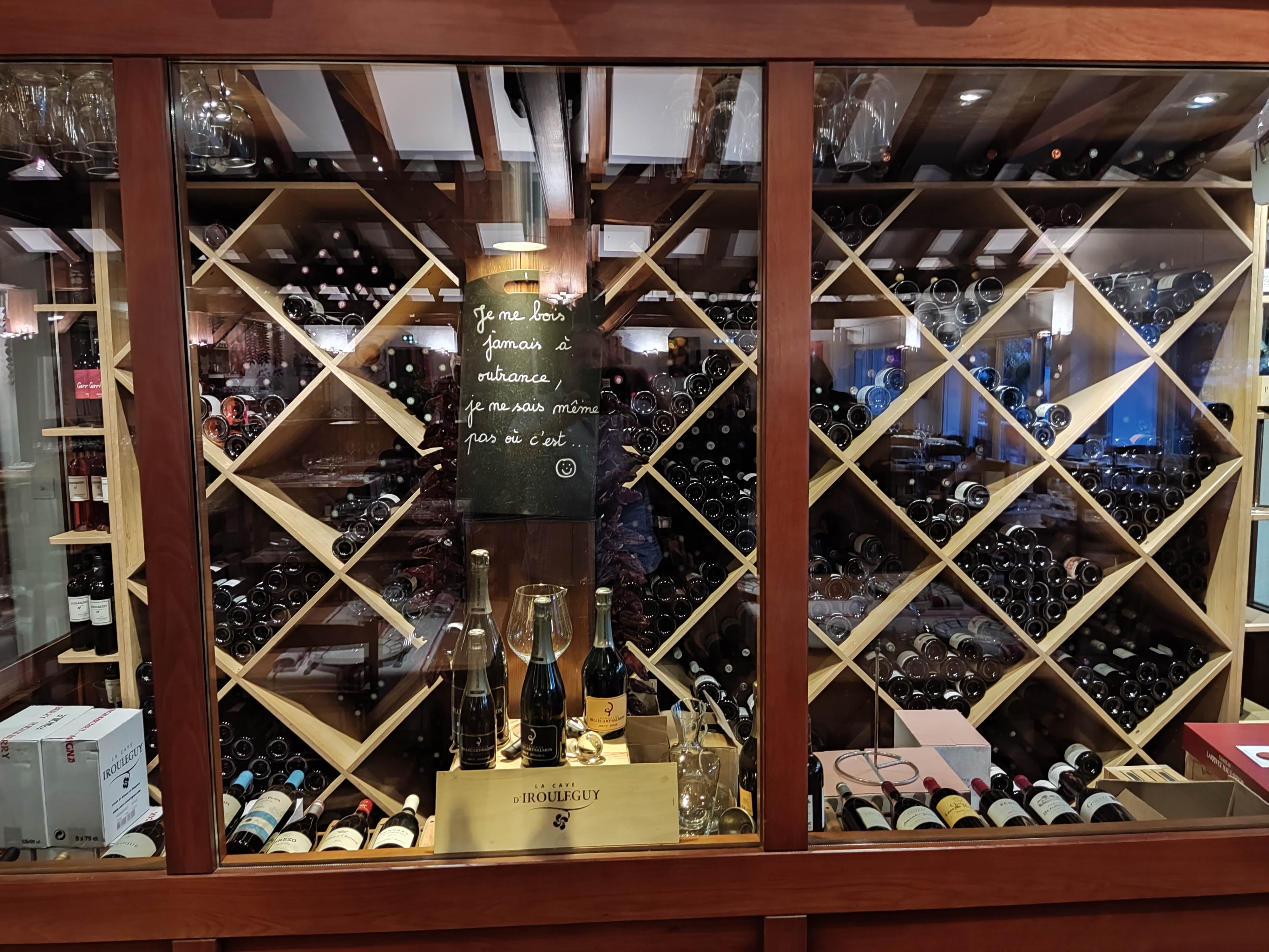 Cuisine typiquement basque délicieuse (la morue biscaienne à tomber) pour le vin se laisser guider ..Un peu corse comme la région basque mais se laisse déguster avec grand plaisir. Un service impeccable Un cadre agréable tant en terrasse qu' en salle clim