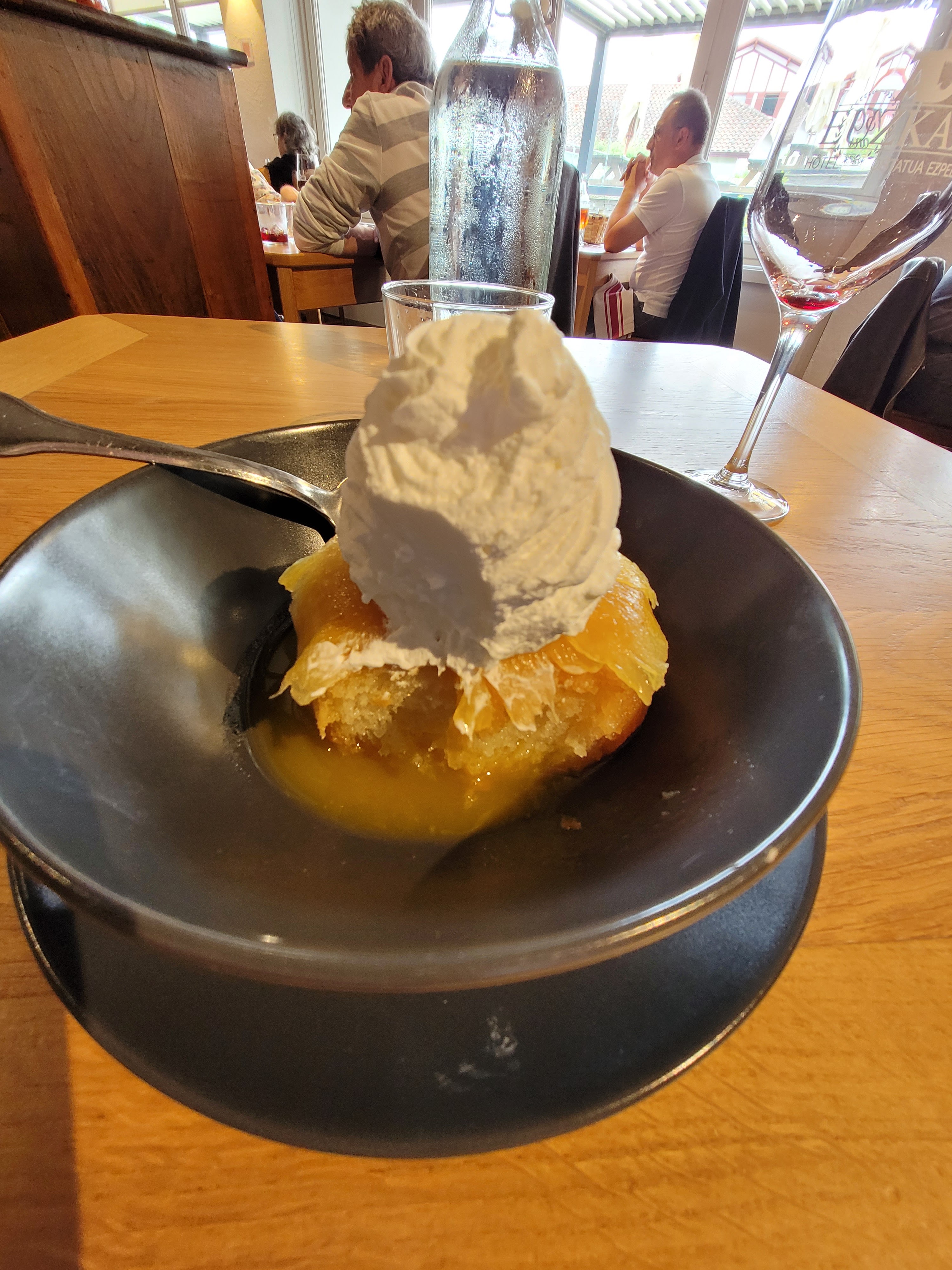Alors que dire si je pourrais mettre plus d'étoiles je le ferais ! Nous étions en terrasse cadre très sympa, les serveurs très gentils. Axoa de veau et pomme de terre sautées, première fois qu'on goûtais l'axoa et comment dire ? Une tuerie c'est excellent, relevée comme il faut, le dessert vacherin glacé et gros chou au chocolat et piment d'Espelette étaient excellents. Vraiment c'est un très bon restaurant si nous sommes de passage de nouveau a Espelette nous reviendrons sans hésiter 🙂