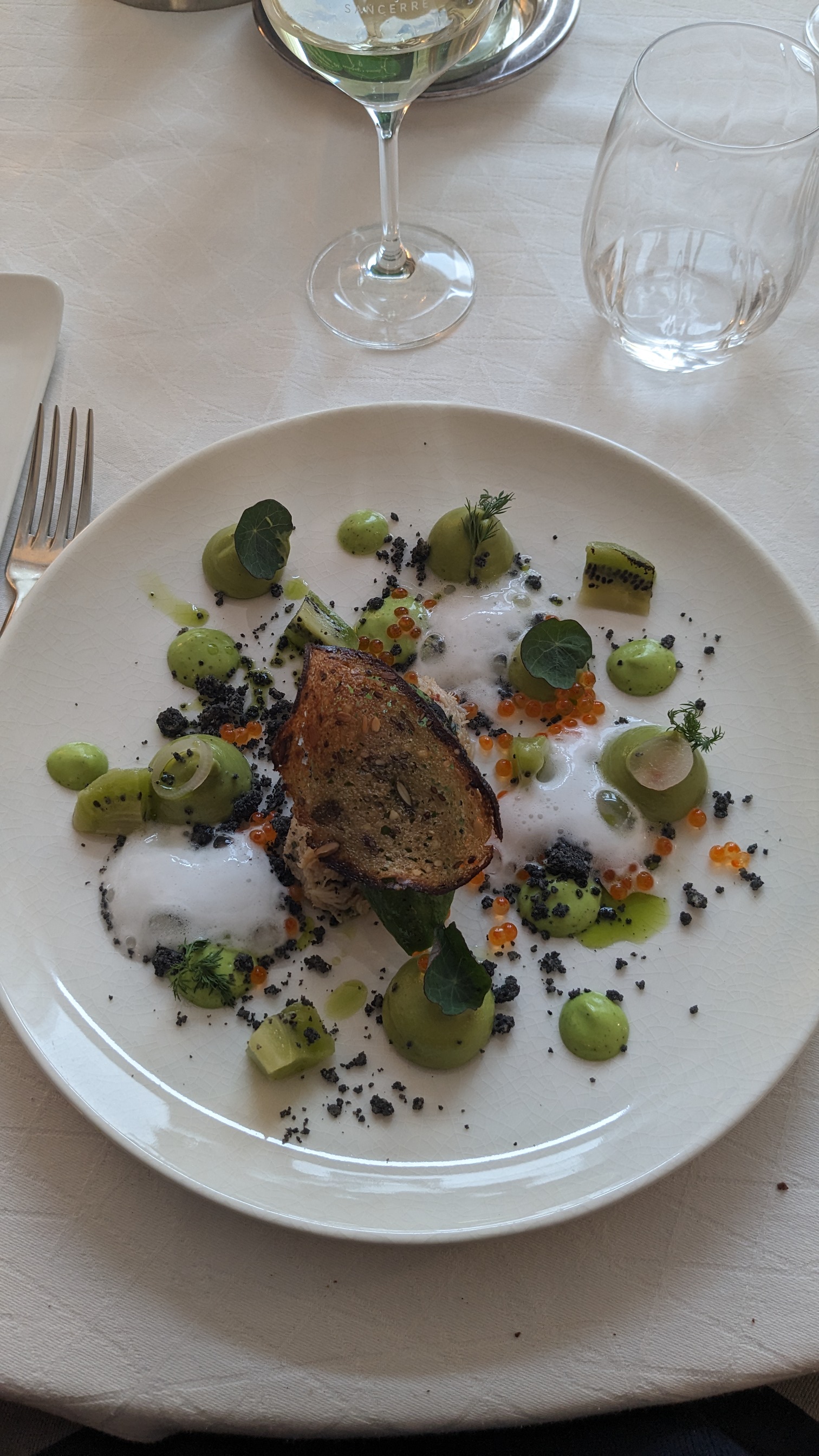 Nous avions sélectionné cet hôtel pour un week-end en amoureux, et nous sommes très heureux d’avoir fait ce choix ! Les employés étaient aussi souriants qu’accueillants, la chambre était charmante et confortable ! Par ailleurs, le restaurant (recommandé par le Guide Michelin) propose des plats que nous avons dégusté avec plaisir ! Petit coup de cœur pour cette entrée pleine de fraîcheur et équilibré au niveau des goûts, le gaspacho tomates et betteraves, chair de crabe au basilic… Un RÉ-GAL !