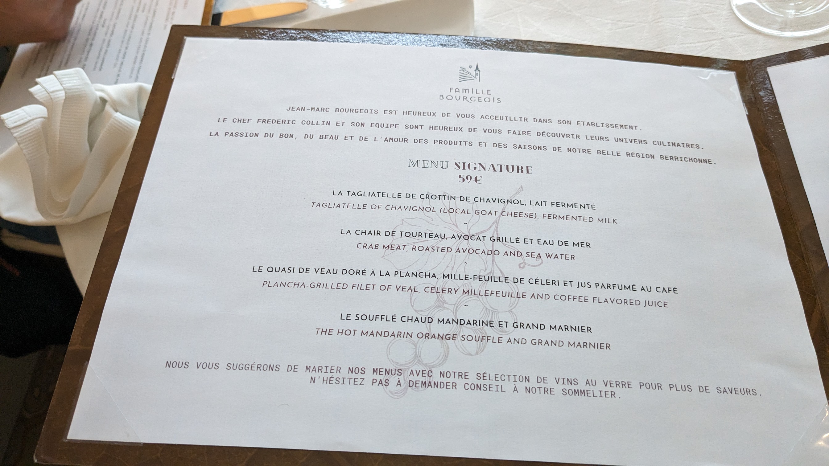 De passage, nous avons déjeuné côté bistrot. Jeunes serveurs inexpérimentés, menu correct mais sans plus et prix relativement élevé. Choix restreint de vins Sancerrois, mais 2 vins californiens proposés ?