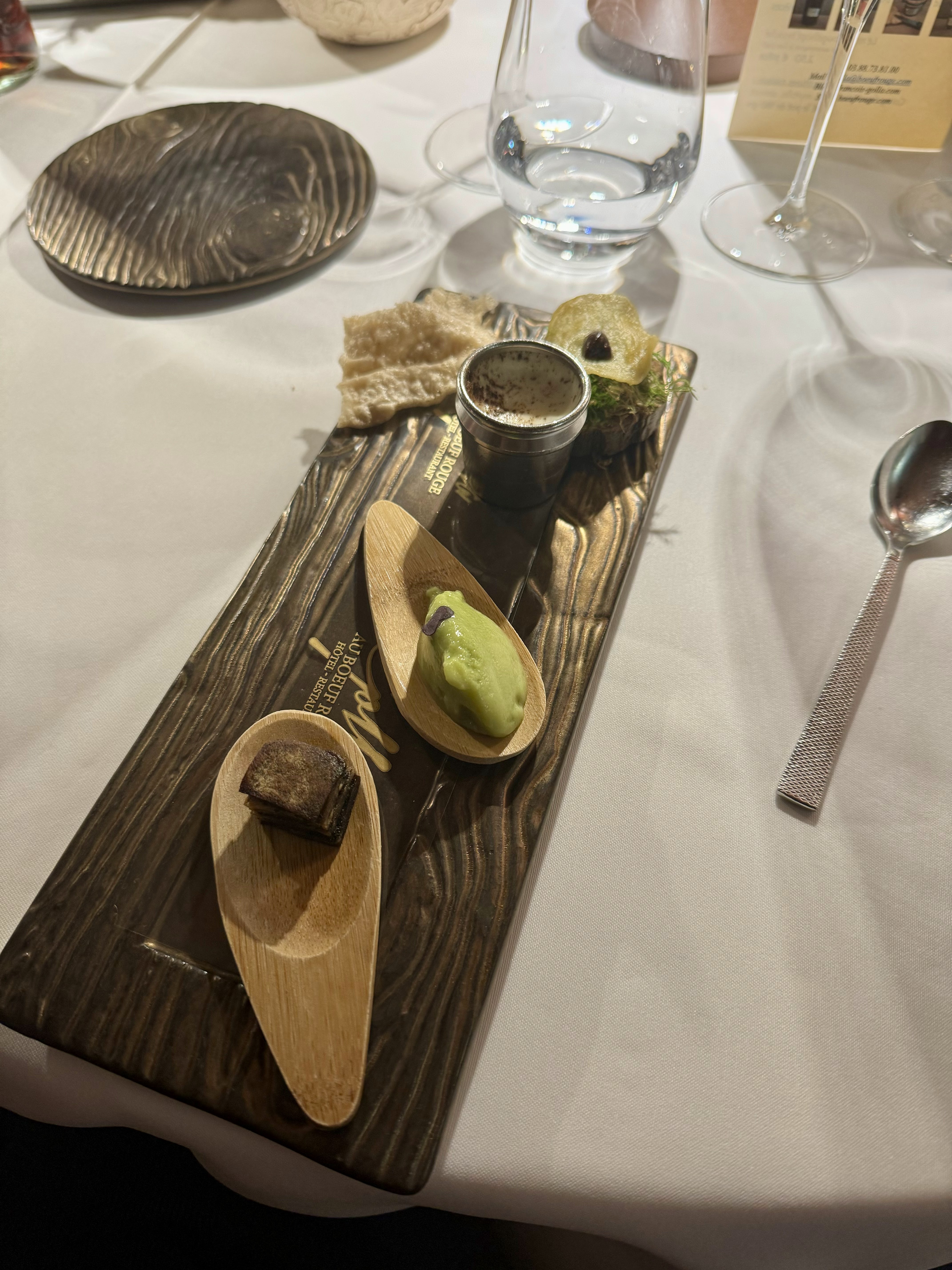 Un lieu ou gastronomie a tout son sens Il mérite bien ses etoiles Du début à la fin du repas tout était finesse délicatesse. Bravo aussi au professionnalisme du personnel... Pas un faut pas Si vous pouvez vous offrir ce plaisir n hésitez pas