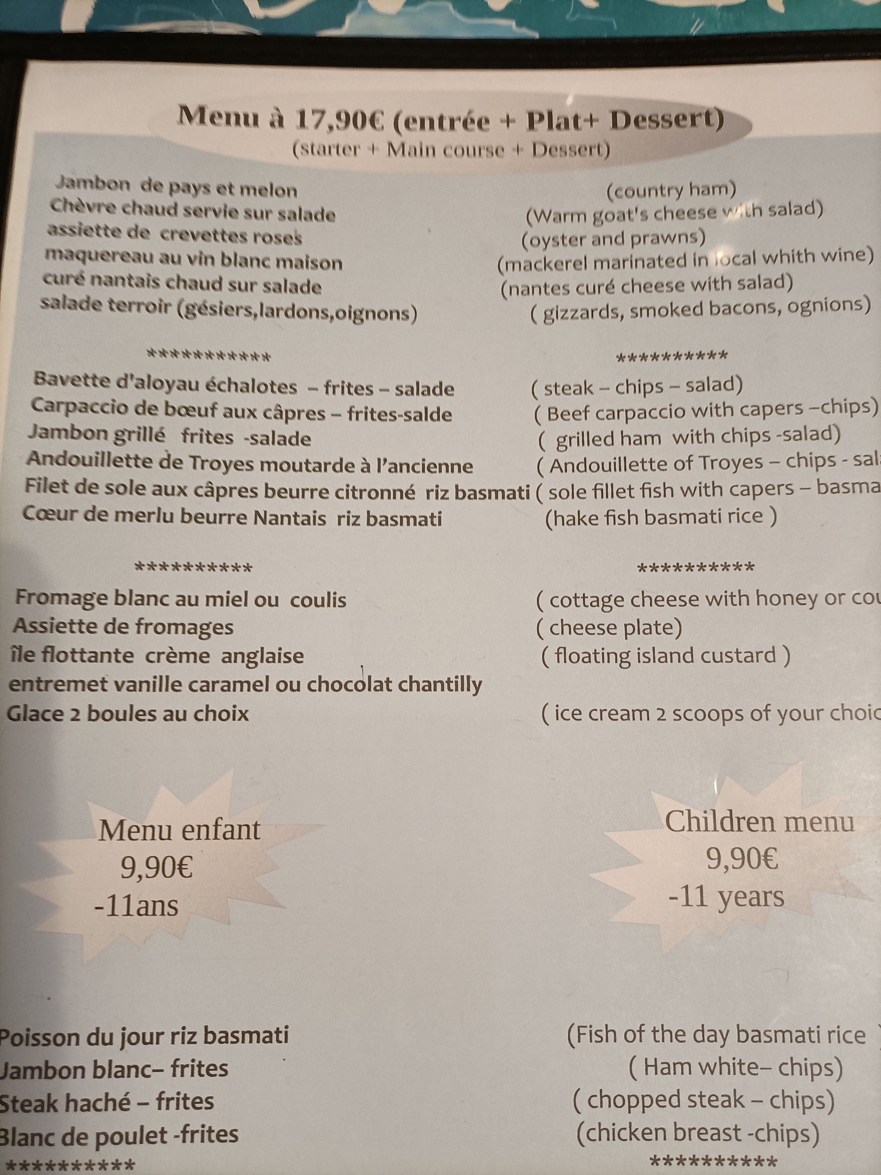 Déçue par rapport à l'an dernier. La carte a beaucoup changer . Serveur poli mais pas enjouer. Coktail du moment =punch ou sangria. !Déçue par la galette qui nétait pas au sarazin bonne mais peu raffinée.