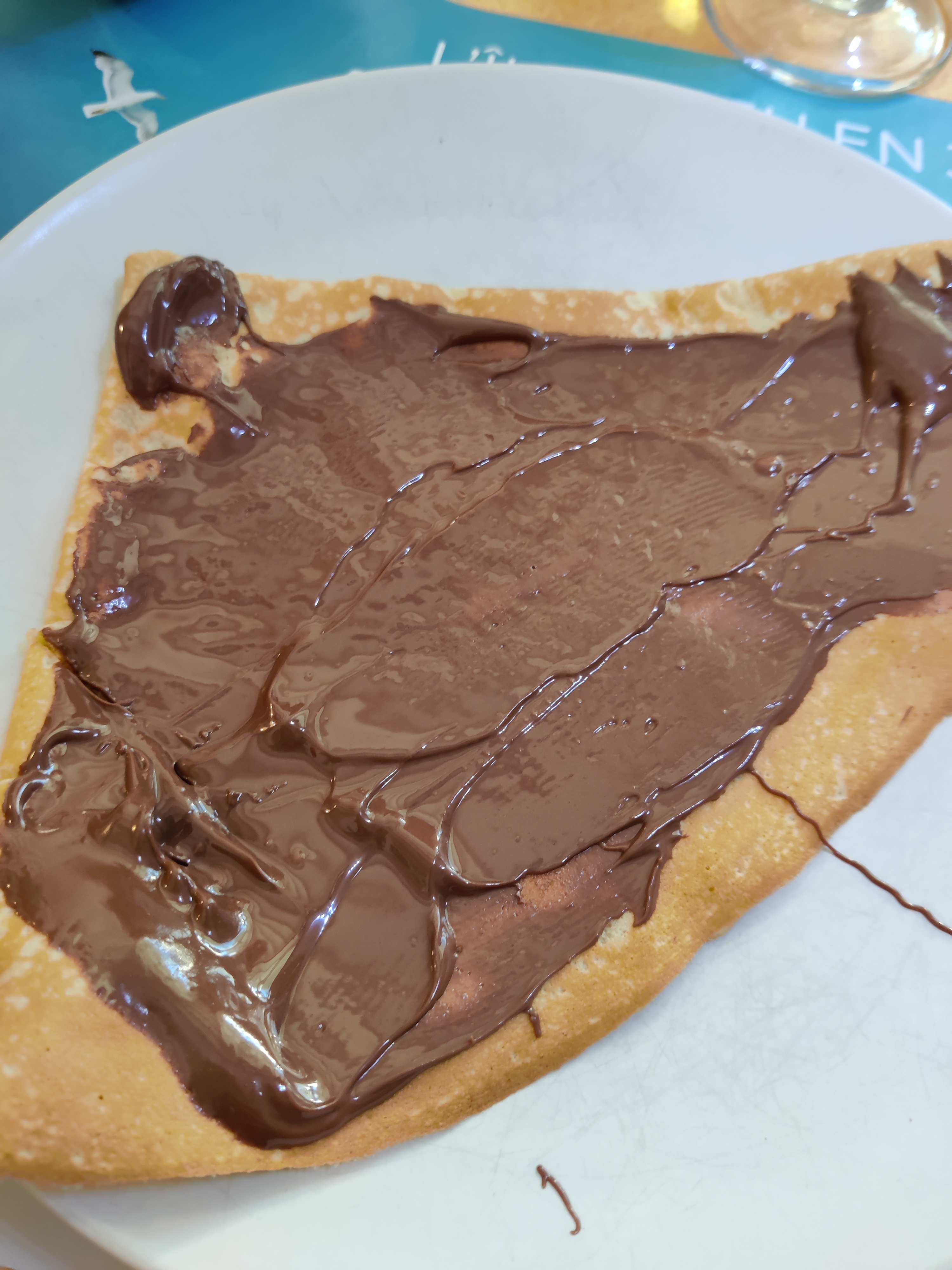 On ne peut pas vendre ce genre de galettes à cette qualité aussi médiocre. C'était à peine mangeable : la pate n'est quasiment pas à la farine de blé noir mais au froment. Je n'avais pas idée qu'on pouvait manger de pareilles galettes aussi près de la Bretagne. Les produits sont de médiocre qualité. Les frites congelées sont bonnes. Le service est gentil.