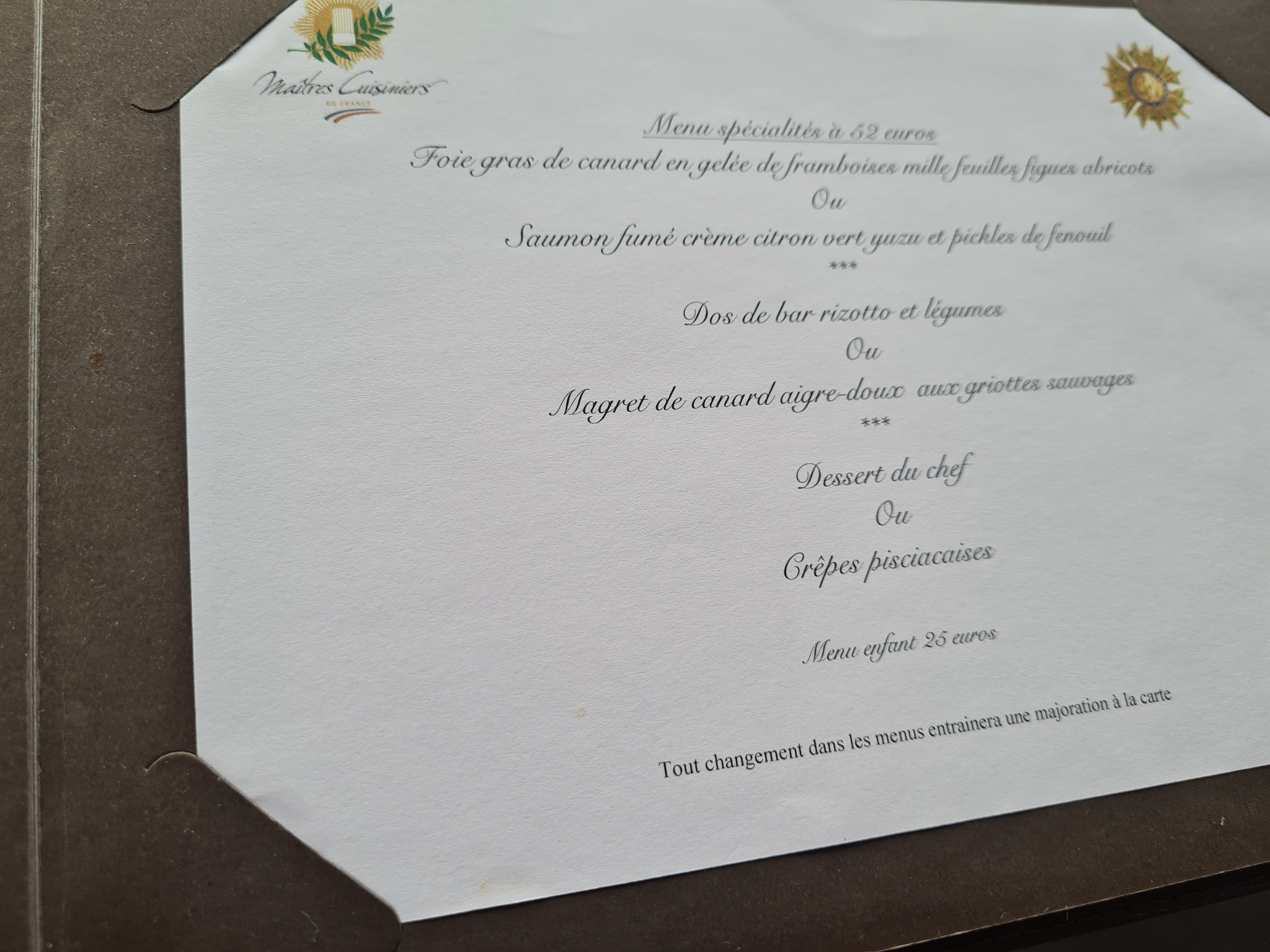 Dommage que le menu est toujours le même. La personne était de service , pas trop aimable. Un vin commandé d' une certaine année sur la carte, nous avons eu sans notre consentement un autre plus jeune ! et sans réduction.