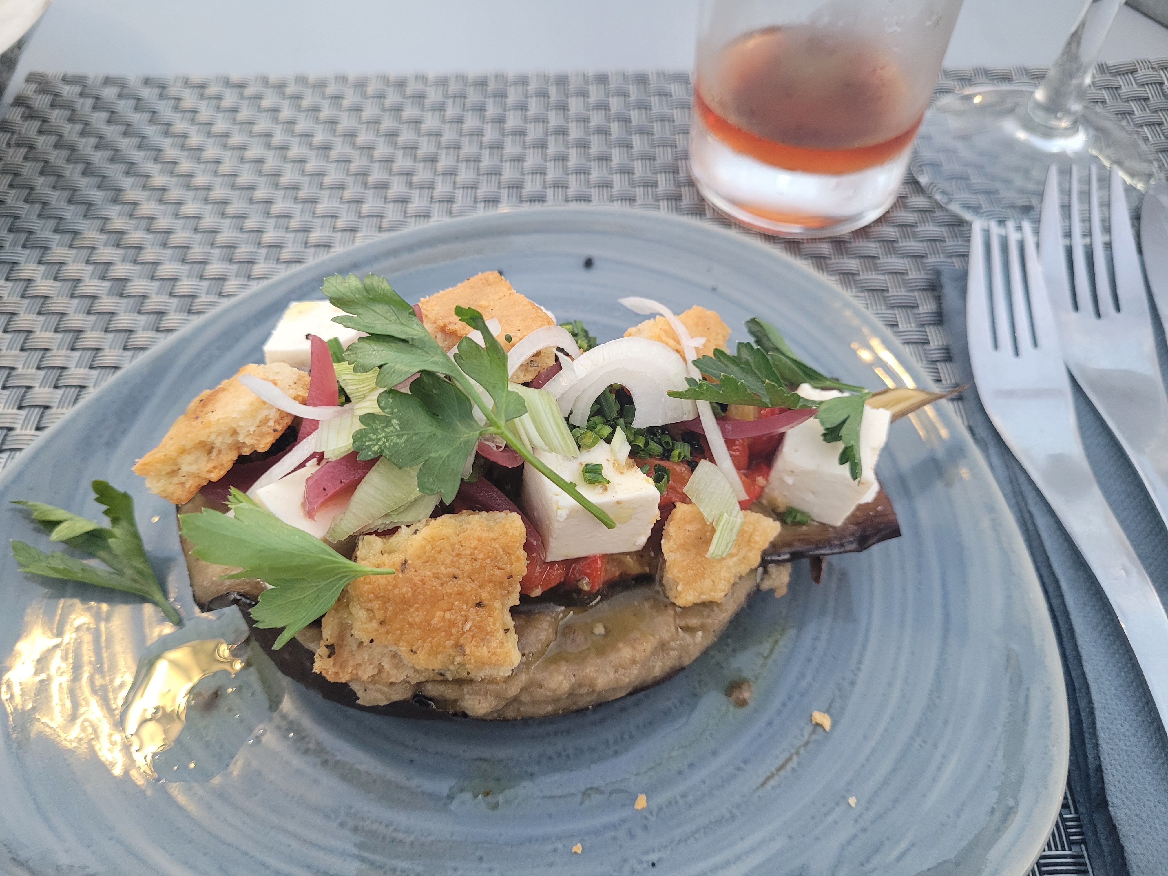 Nous sommes allés au restaurant et j'ai vraiment adoré la caponata végétarienne. C'est vraiment bien qu'ils aient un plat végétarien au menu et c'était aussi vraiment délicieux. Grosse recommandation !