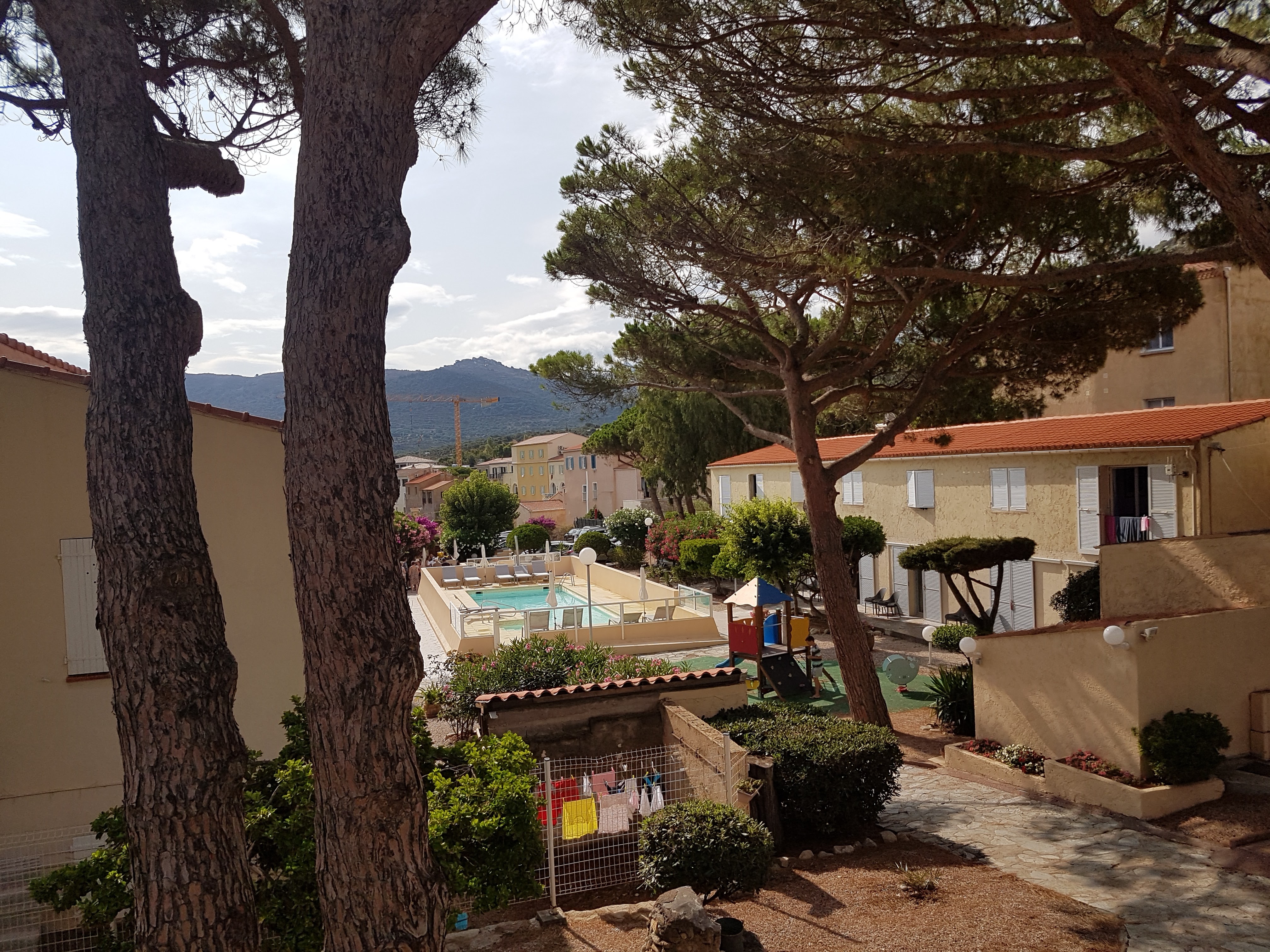 Accueil parfait, le personnel est très avenant. Petit déjeuner d'un bon rapport qualité prix, c'est appréciable en pleine saison et la vue est superbe, surtout le soir sur la terrasse du restaurant. L'hôtel est idéalement placé quoi que pas simple d'accès en voiture, le parking intérieur est un vrai plus. L'hôtel présente très bien de l'extérieur piscine est jeux pour les enfants au centre des chambres, c'est top. Nous avons logé dans une chambre quadruple à rafraîchir au sens propre comme au sens figuré... Pas de clim ! En Corse c'est difficilement acceptable surtout avec des enfants.