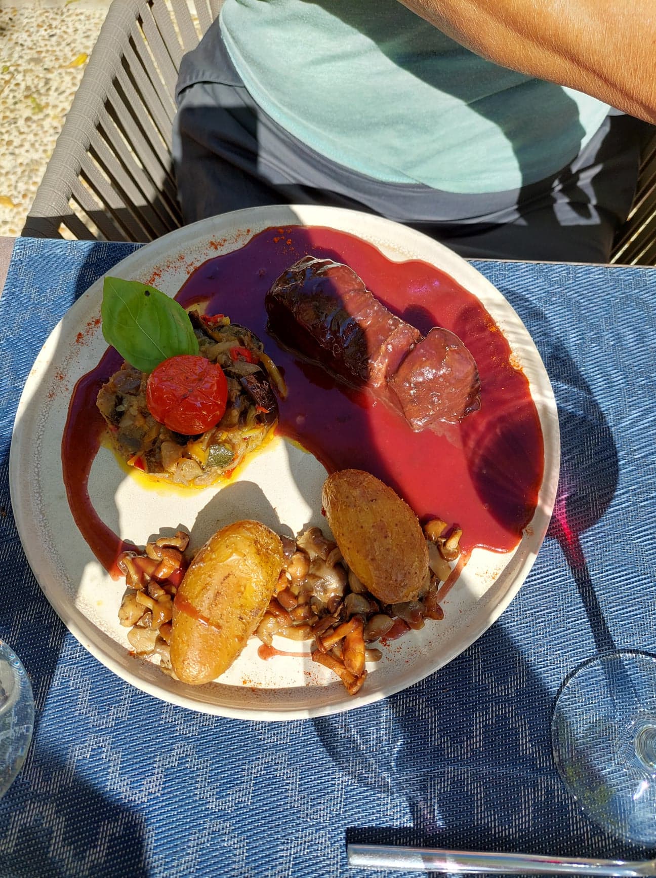 Repas servi dans le jardin dans un cadre très agréable, très bon repas, très belle présentation.