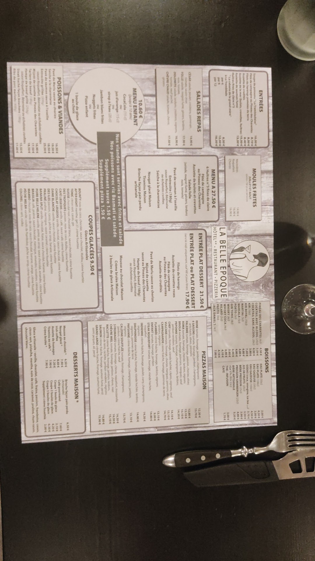 Soirée étape à la Belle Époque à l'occasion d'un déplacement professionnel. Accueil très agréable. L'établissement est bien entretenu,la chambre et sa salle d'eau sont propres et spacieuses. Pour le repas, une carte bien garnie qui offre un large choix de plat. J'ai apprécié la seiche à la charentaise accompagnée d'une bière brune locale. Le dessertes plus classique avec une crème brûlée qui tient la route. Le service est aussi agréable qu'efficace. Le matin, le petit déjeuner est bien garni. Ne pas hésiter à franchir la porte de cet établissement.