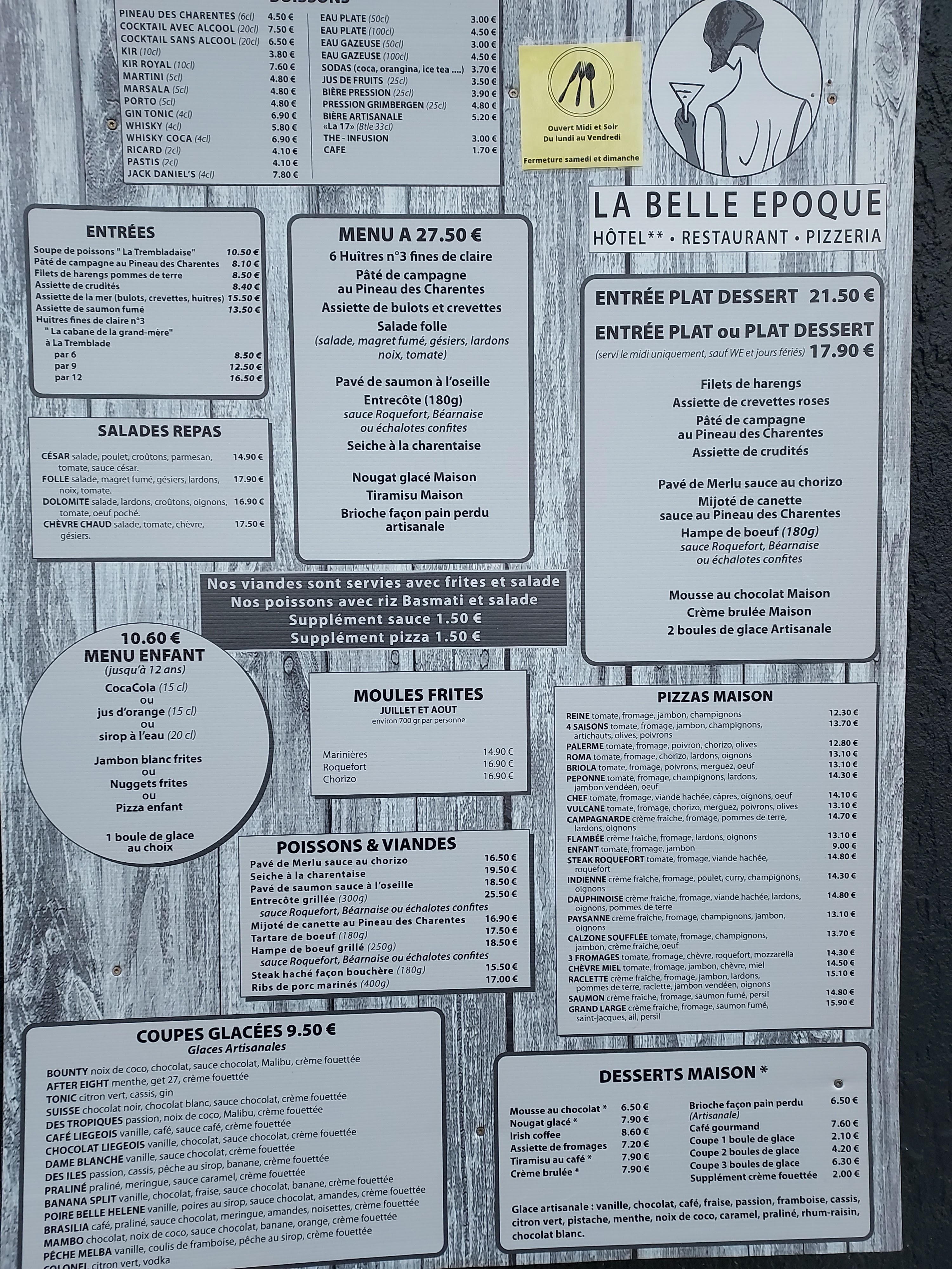 Week-end passé à la Tremblade et ravi d’avoir rencontrer les propriétaires et employés de l’hôtel de la belle Époque. Chambre spacieuse, repas du soir et du midi varié et au Top. Qualité et quantité au RDV. Petit déjeuner nous attendait comme convenu et très copieux… pour un gourmand j’étais heureux. Sans hésitation nous y retournerons Bonne continuation Aurelien et Charlotte Les poitevins
