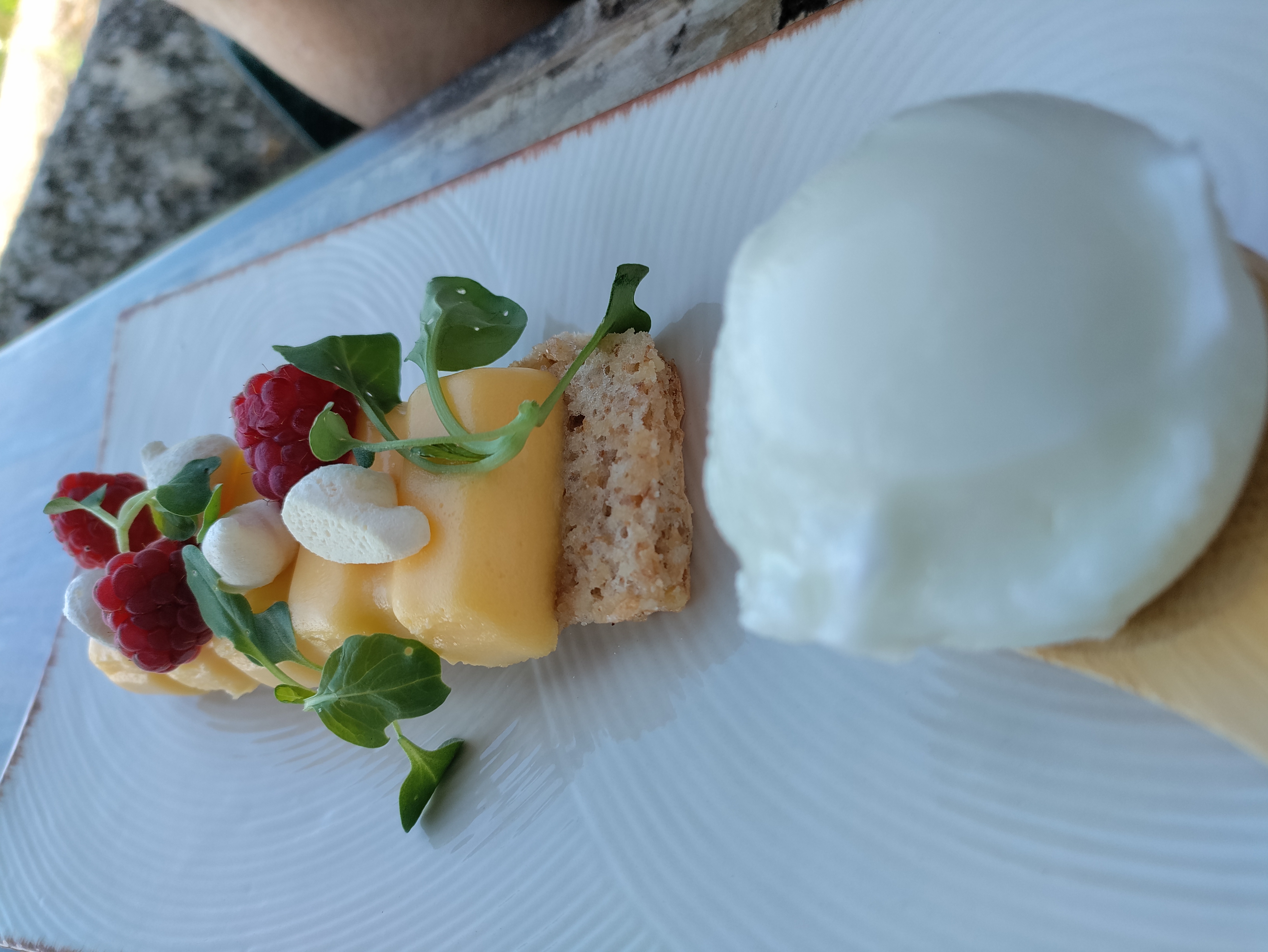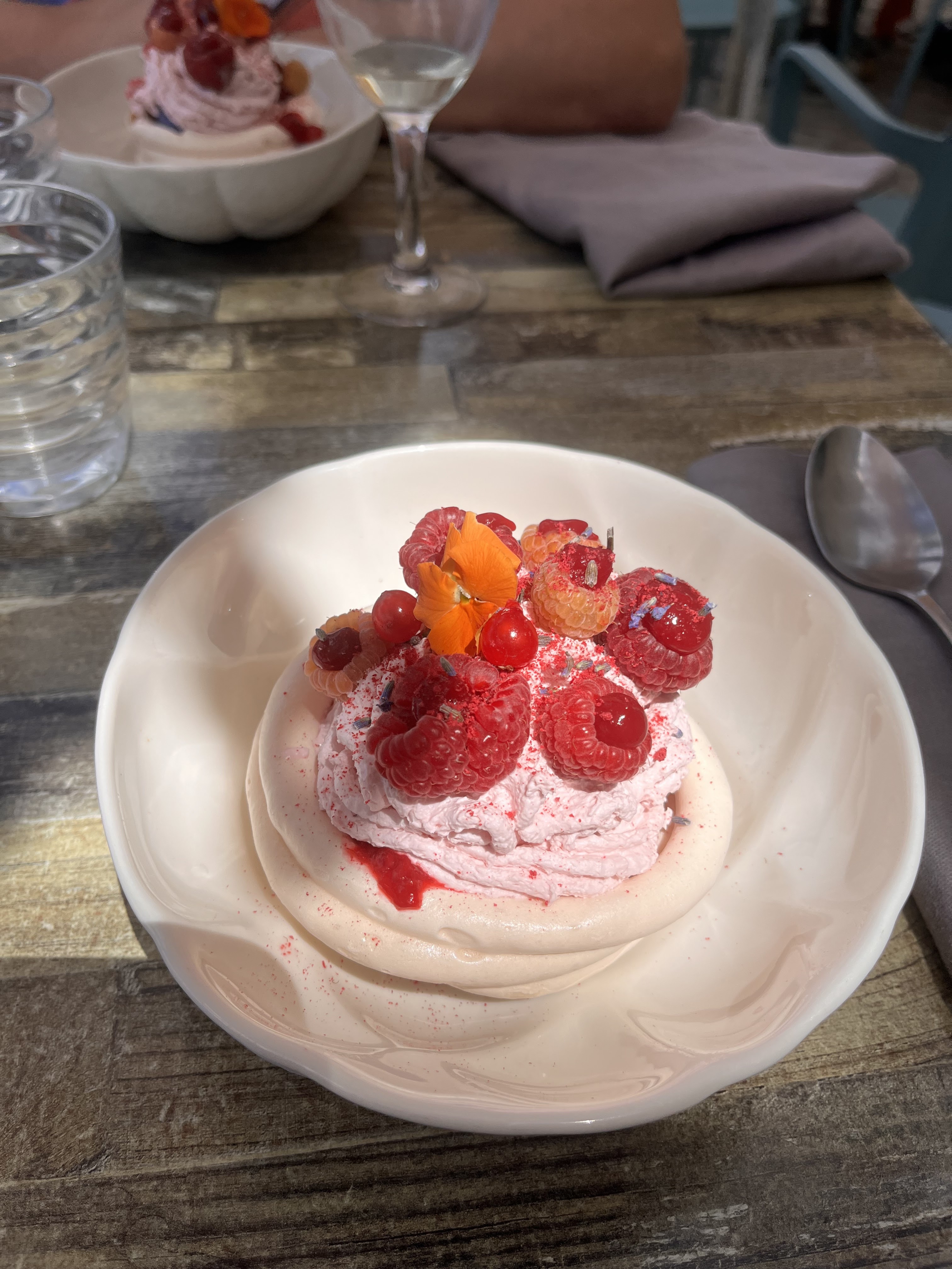 Nous avons déjeuné au restaurant et quel délice ! Tout était très bon , notamment la pavlova avec la glace à la lavande. Et le service était parfait , très souriant et aux petits soins (nous étions avec un bébé et ce n' est pas toujours simple dans les restaurants mais là c'était un super moment en famille grâce à eux )