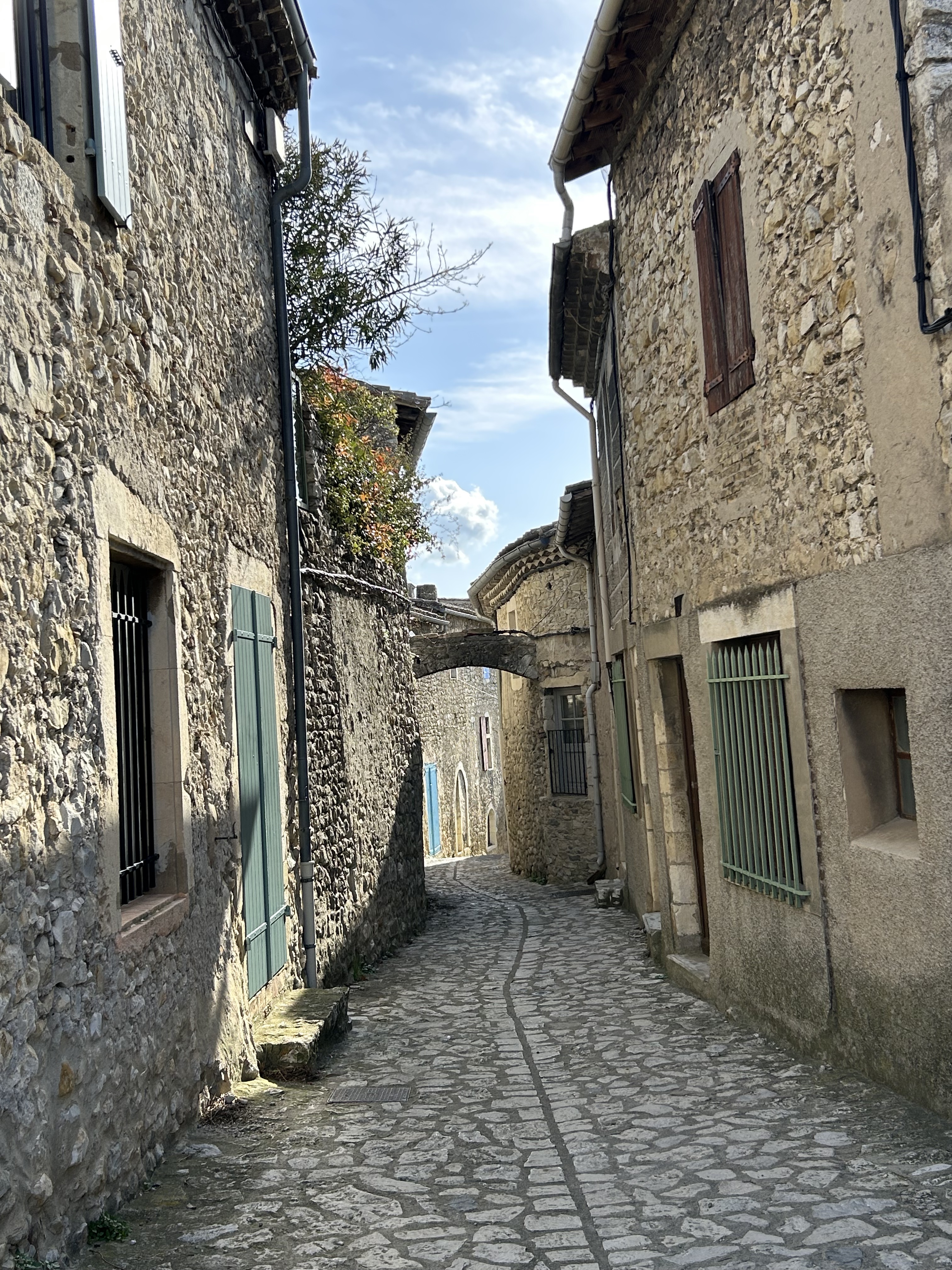Du nord vers le sud une étape s'impose la Capitelle à Mirmande. Dans l'ancienne propriété d André Lhote, qui a réveillé ce village perché est installé un jeune couple de restaurateurs. Lui aux fourneaux où il prépare une excellente cuisine avec des produits locaux, elle, accueille avec le sourire les touristes qui comme nous après le confinement avions besoin de grand air. Aux beaux jours et sans mistral une agréable terrasse nous permet de voir au loin les premiers contreforts de l' Ardèche. Notre chambre petite mais avec un grand lit est bien confortable, elle donne sur une ruelle très pittoresque, au calme. Le petit déjeuner est très varié et copieux. Par ailleurs les normes du Covid y sont bien respectées.