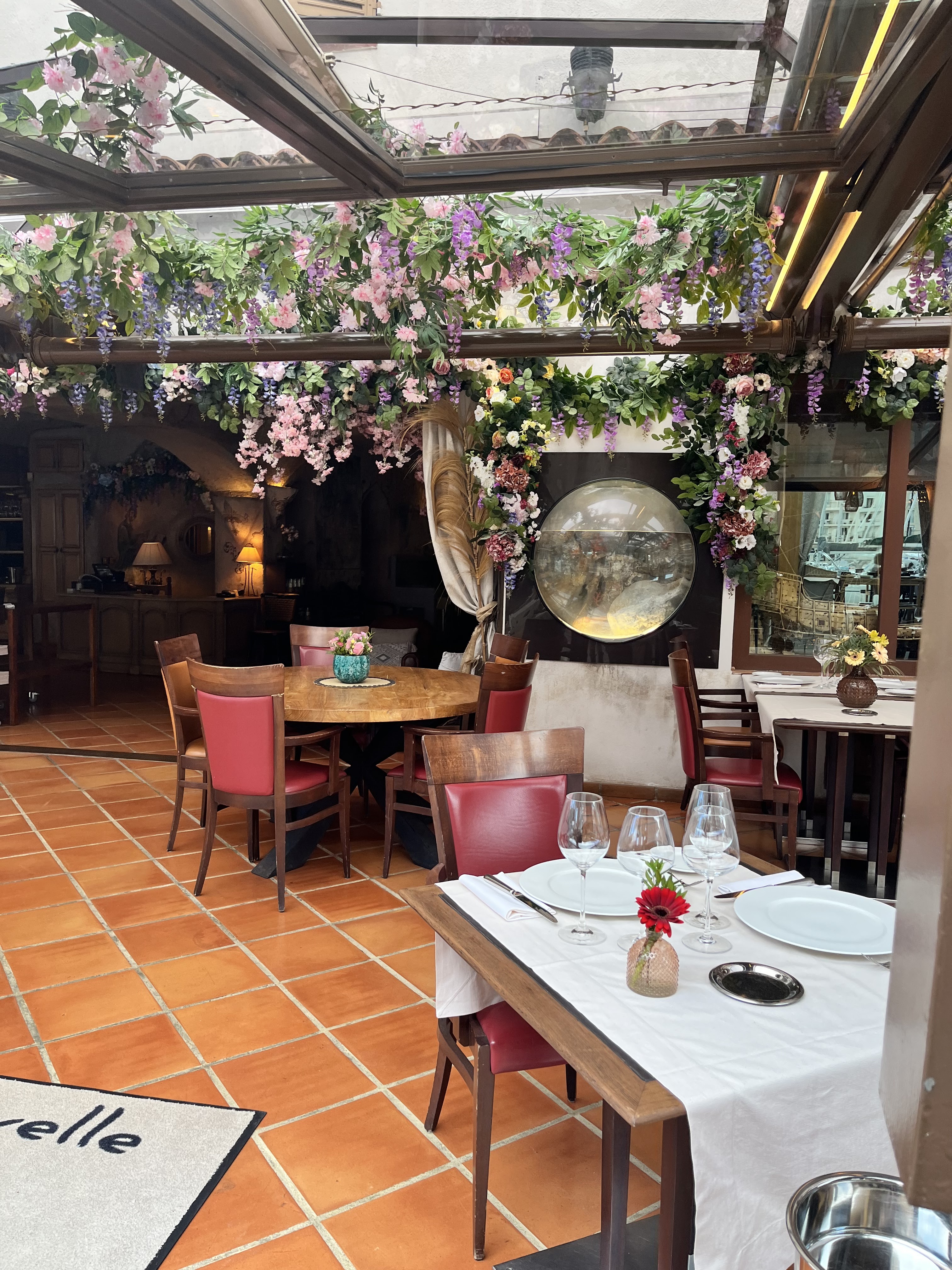 Nous sommes venues entre copines pour manger le midi . Alors l’emplacement est plus que parfait vu sur le port , la décoration au dessus et le service aussi ! Petites coupettes de champagne offerte des l’arrivée qui est très appréciée , parcontre les prix sont exorbitants malgré la qualité du service . 150 e la daurade de 900 g qui vient de Méditerranée…. C’est de l’abus .