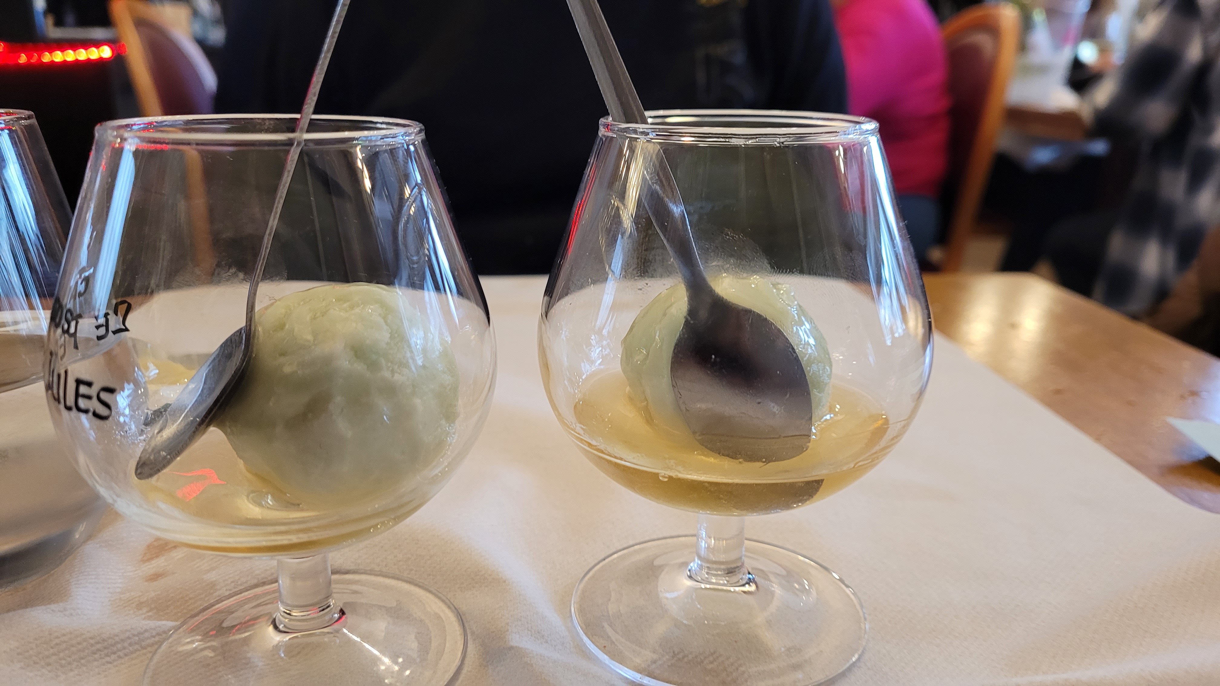 Au restaurant, nous avons partagé un excellent moment, et nous nous sommes régalé entrée au menu a 35€ le foie gras , douceur exquise suivi par riz de veau et rognon, juste un peu déçu par la cuisson des rognons que j'aurai préféré rosés, pour le dessert le maxi Baba que je pensais vraiment maxi.