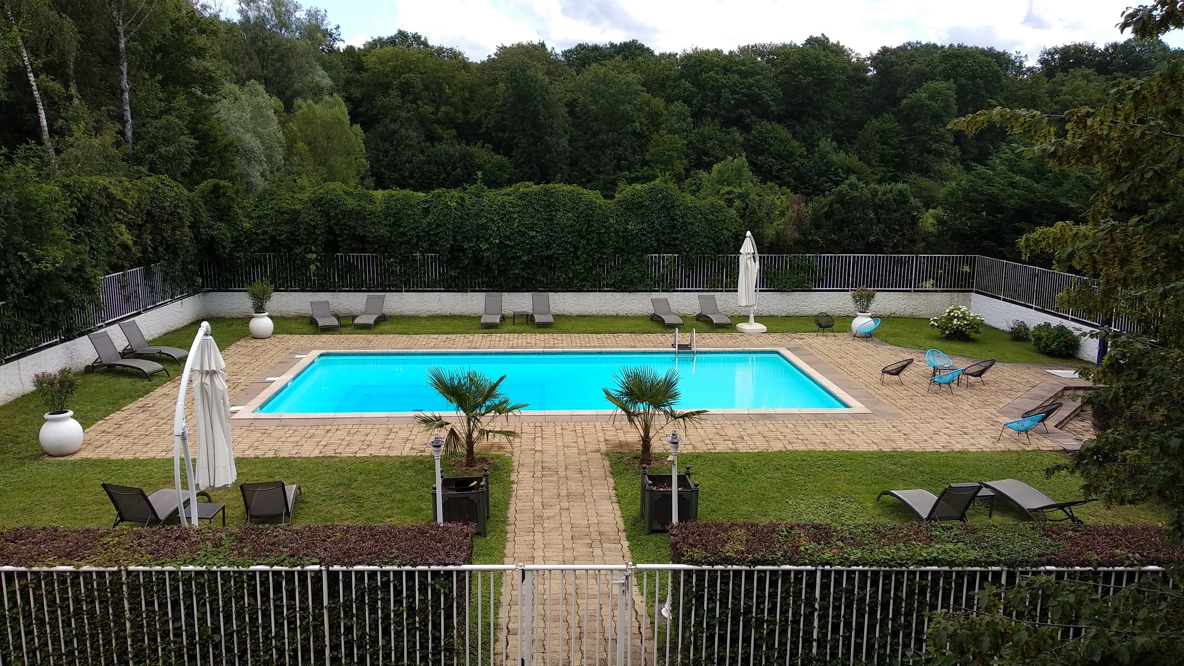 Pour une étape vélo en venant de Montbéliard et en direction de Dijon. Le patron nous avait réservé un garage pour nos deux vélos. Chambre très sympathique avec petite bouteille d'eau de Vittel et des petits savons. Très jolie piscine et patio. Petit déjeuner au top : oeuf parfait, fruits frais coupés, pain frais, briche et gâteaux, yaourt du Jura...
