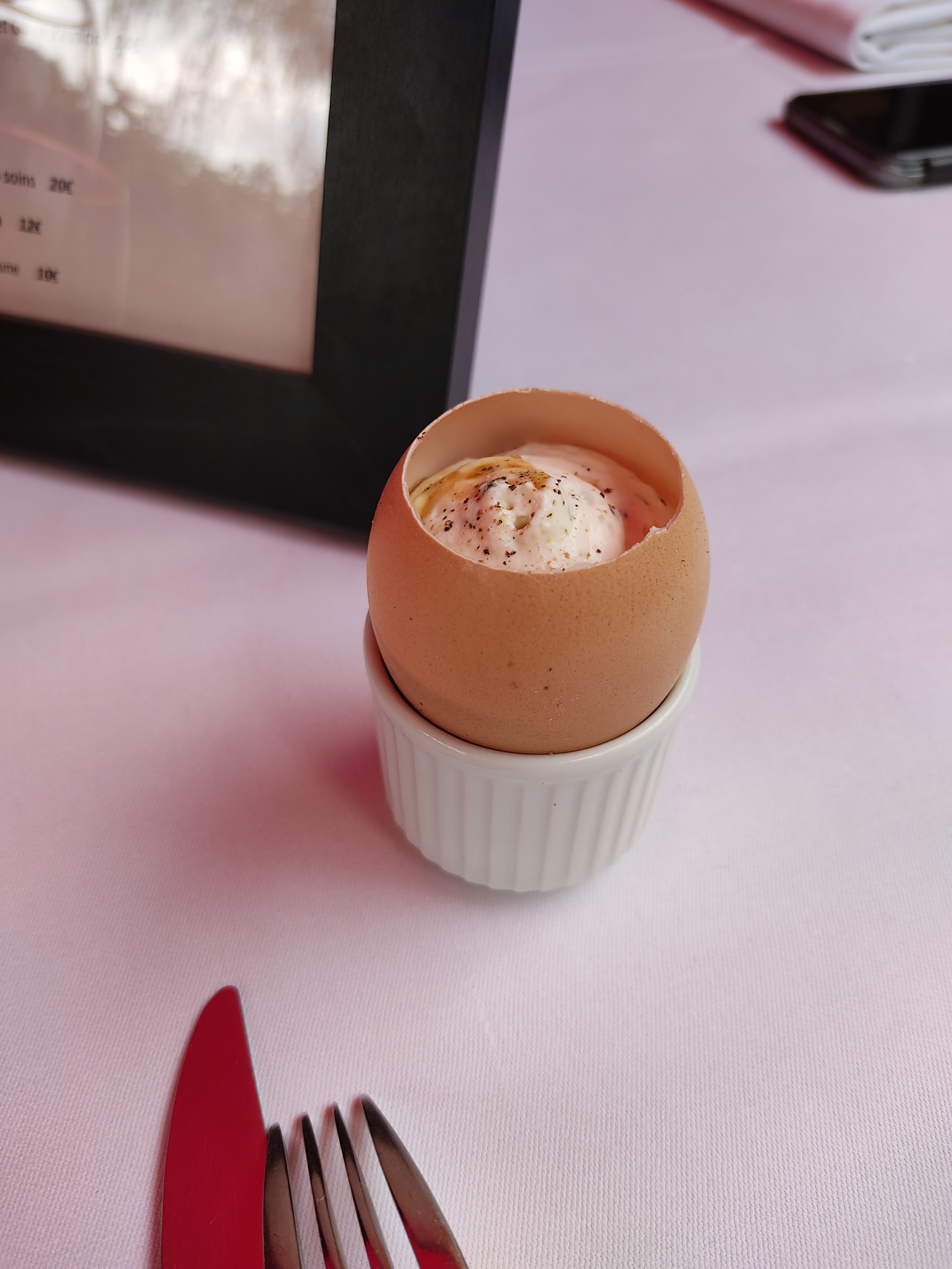 Un repas offert par mon épouse Très bien reçu cadre terrasse sympathique.des mets de qualités bien travaillés avec une explication a chaque plat Un chef présent une équipe Formidable Vous savez recevoir .une belle expérience a réitérer Merci a vous