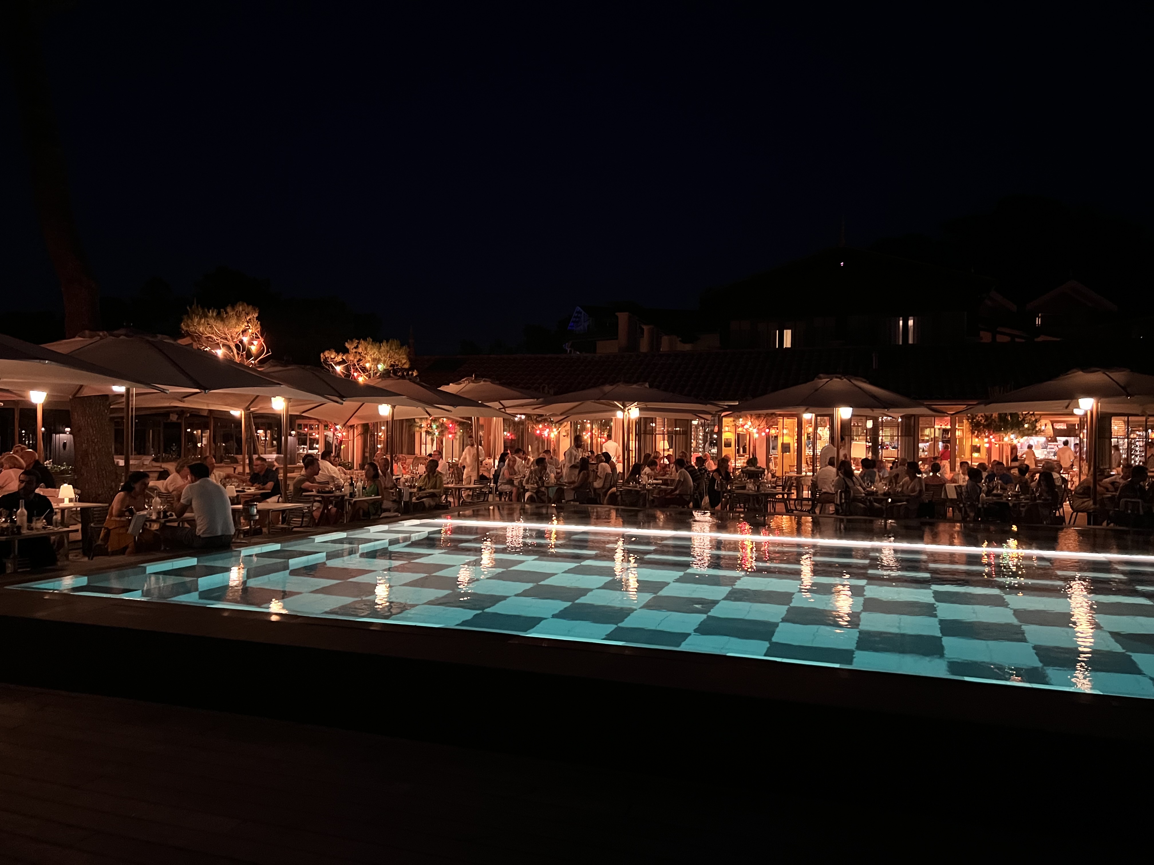 Tout est cher. En fait on paye l'emplacement qui est splendide. Service sympa mais basique. Dans l'assiette rien de surprenant. Le côté bobo avec par exemple le supplément piscine quand vous commandez un verre de champagne. On imagine pas que la coupe arrive avec des glaçons... c'est la piscine ! Une faute de goût qu'un restaurateur devrait s'interdire.