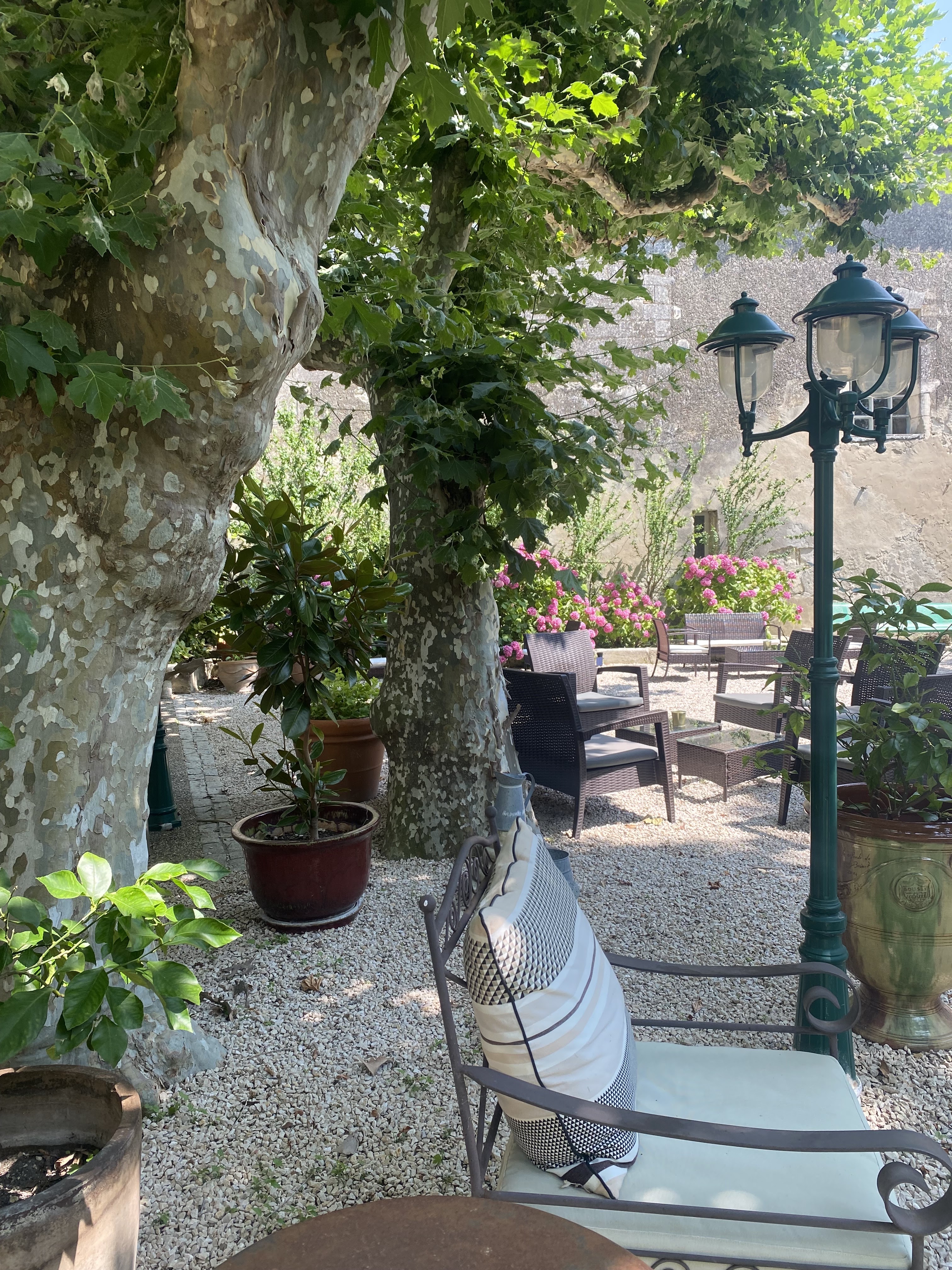Un endroit plein de charme et de quiétude Déjeuner en terrasse ombragée eviter de si rendre avec enfants Les plats sont divin j recommande 32e les 3 plats