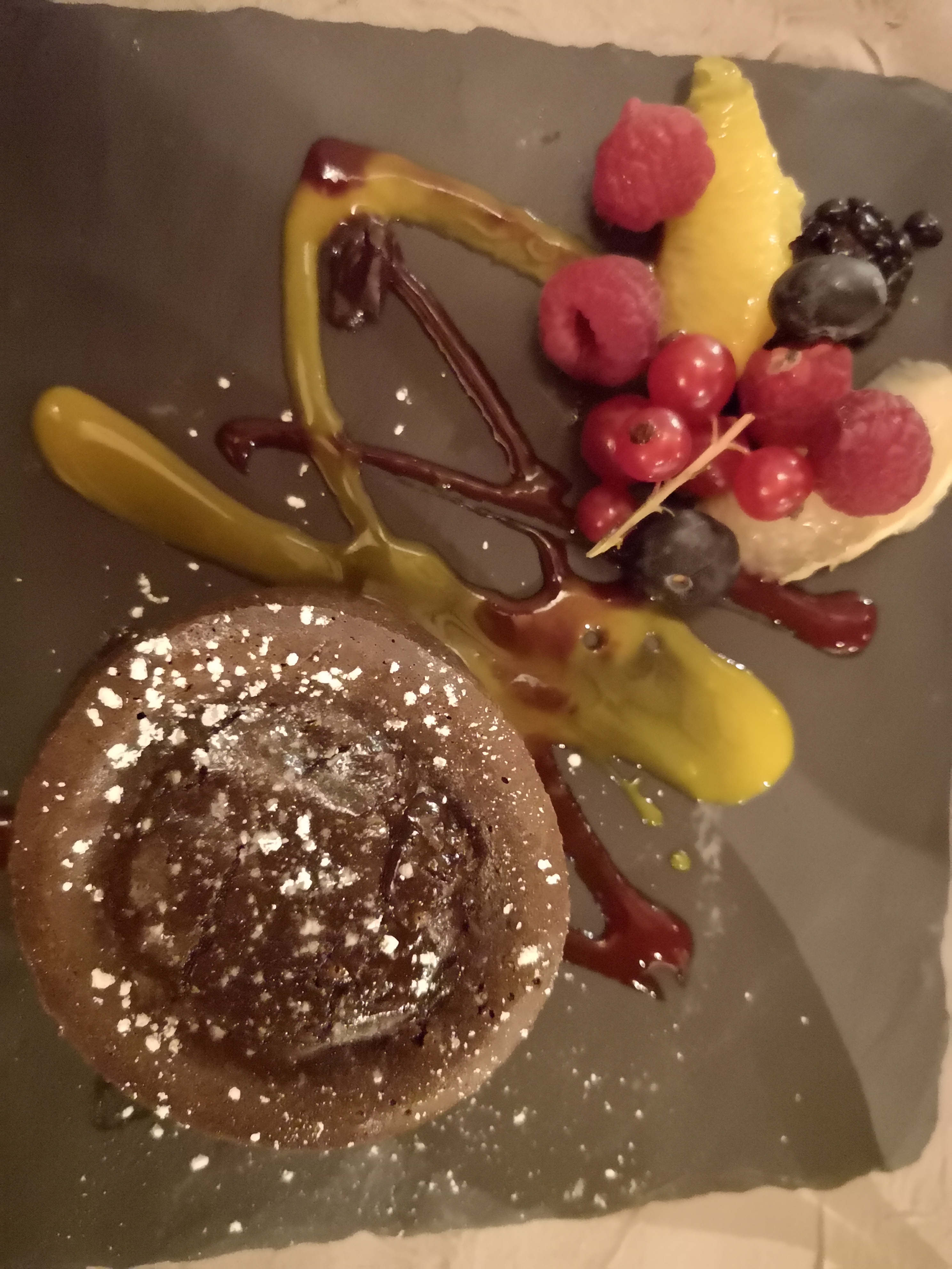 Au début tout se passer bien après le poison etait limite cru, et froid. La souris d'agneau no comment, le gâteau était le seul truc bon. Bref je déconseille !!! À fuite !!!