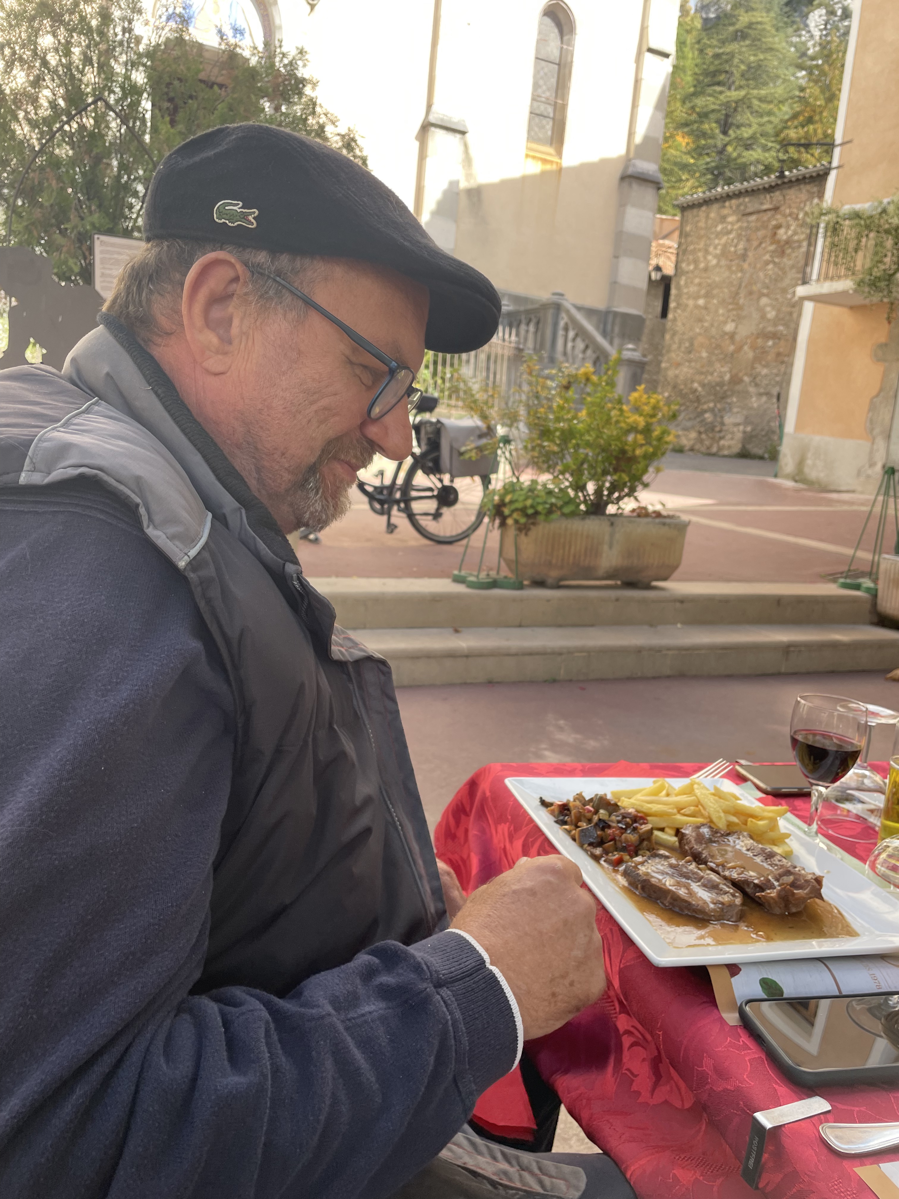 Restaurant juste devant l'église dont la terrasse est sous 1 un énorme platane. Le service est impeccable. La nourriture moyenne mais l'intention est la: daube, polenta, etc... super moment!