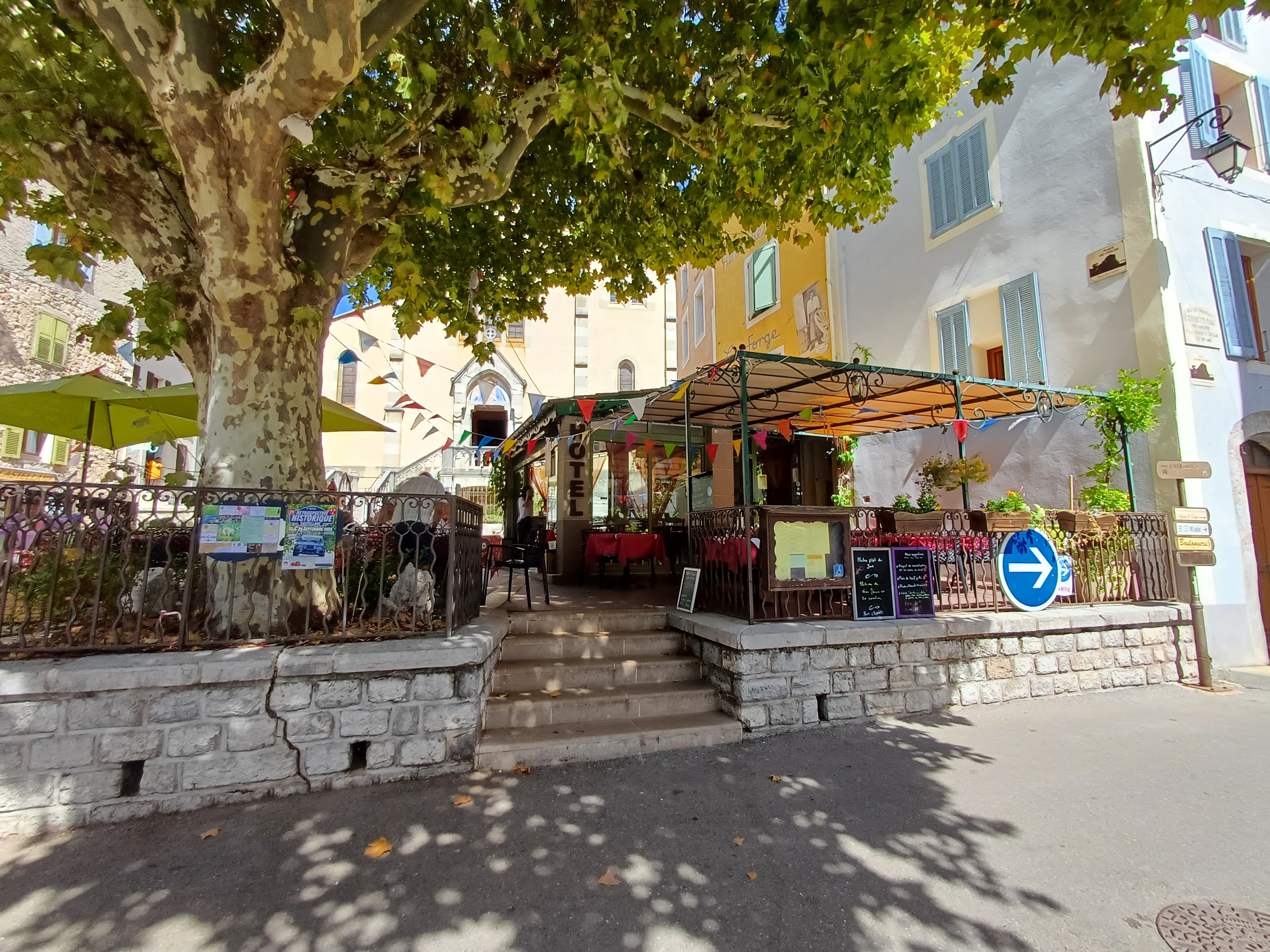 Un endroit très chaleureux où il fait bon séjourner une semaine ou deux à la belle saison. Restaurant de grande qualité à la plus belle terrasse de Castellane, au pied de l'église, à l'ombre de son platane centenaire plein de chants d'oiseaux, les chambres meublées avec soin dans un bâtiment plein de charme avec ses escaliers d'époque, l'équipe entière particulièrement souriante et attentionnée, la proximité du centre du village de la place centrale et de la piscine municipale et du fameux Roc... Bref, que du bonheur!
