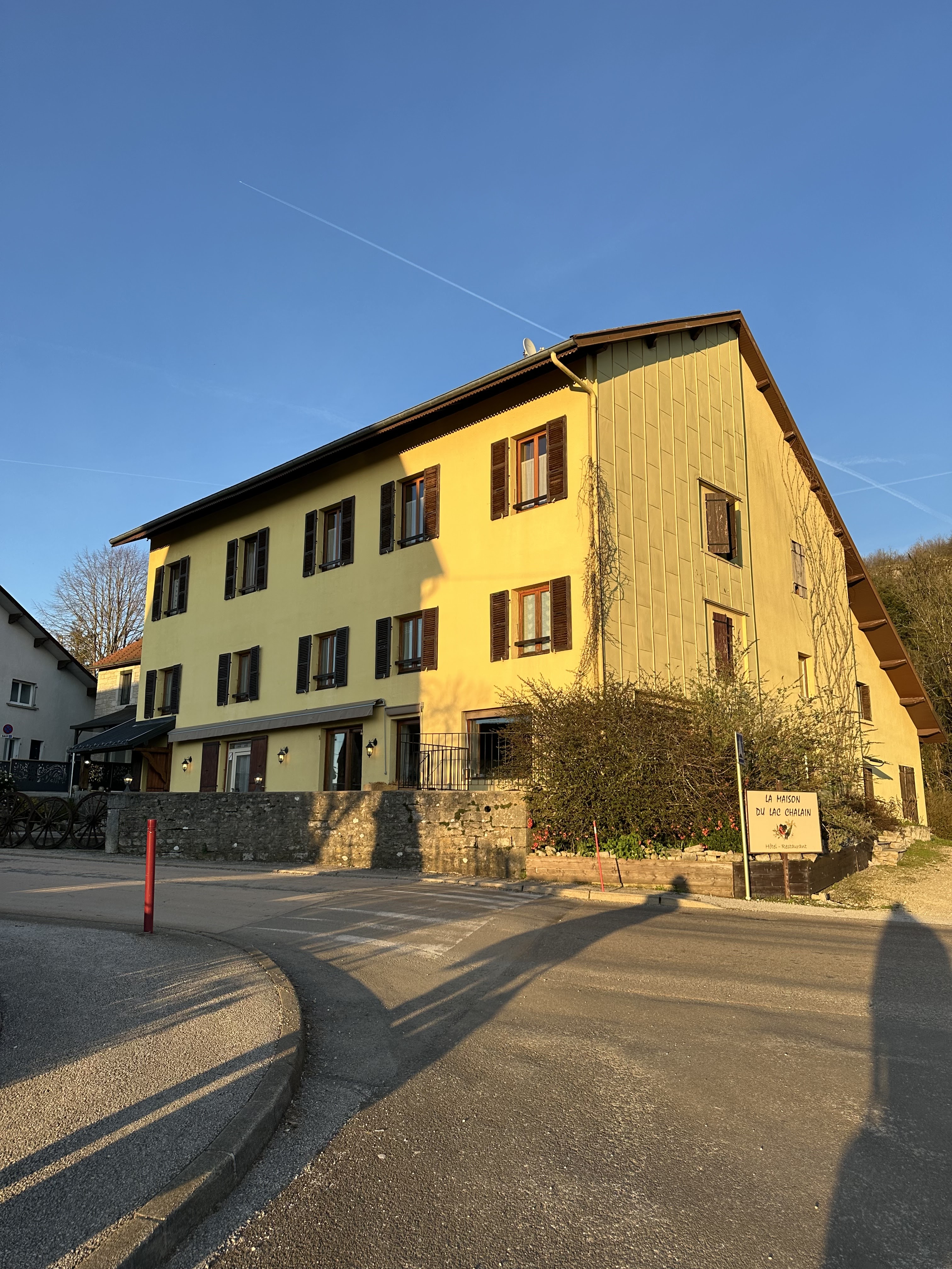 L'Hôtel est situé au bord d'une route très passante. Prévoyez des boules quies si vous avez le sommeil léger et ne voulez pas être réveillé dès l'aube. La petite chambre, dont la décoration est rustique était très propre. La salle de douche est étroite ce qui explique que le lavabo se trouve dans la chambre. Le plus: le lac Chalain se situe seulement à 3 km de l'hôtel.