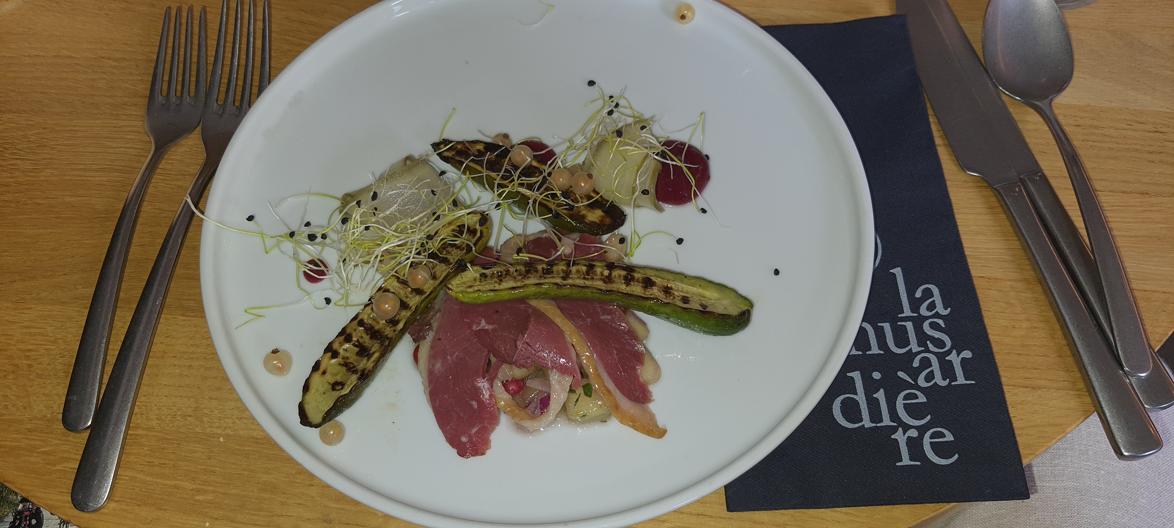 agréablement surpris dès l arrivee des entrées. Produits frais et très bien cuisinés. Deux remarques néanmoins : on ressent trop l influence du chef du jardin des plumes, ce qui gâche la propre identite du lieu ...sauf si la musardiere en est l annexe. Auquel cas ma remarque n a pas lieu La carte des vins ne nous a pas faite emballée realise par un caviste de Rouen...