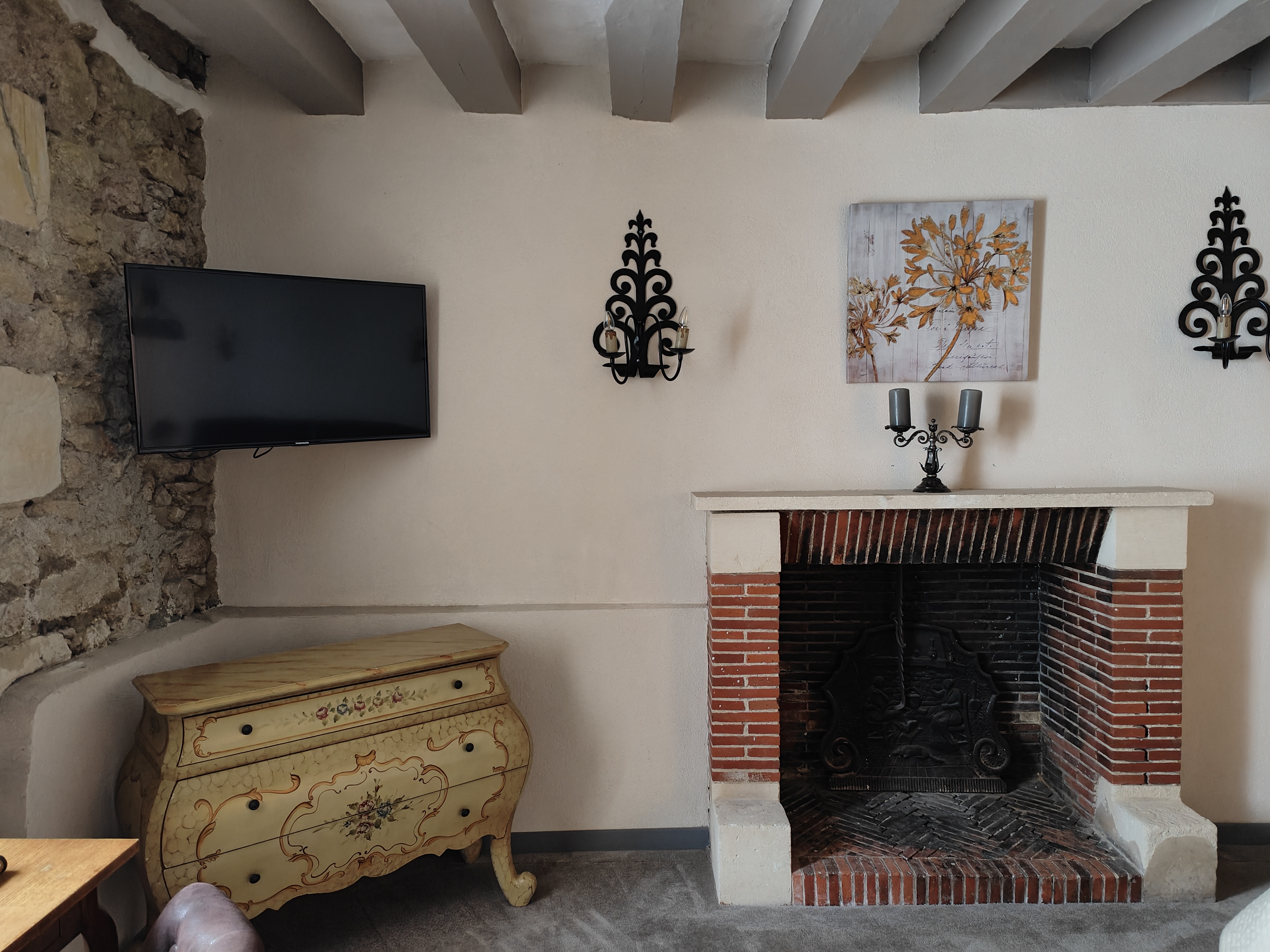 Un lieu étonnant qui nous arrivent directement des années 60. Je n avais plus vu de bidet dans une salle de bain depuis l enfance. On s étonnera aussi la porte des toilettes qui ne ferme pas et sa fenêtre à rideau qui donne sur un lieu de passage. Le petit déjeuner est vraiment très bon, le parking appréciable et localisation à 400 m du château appréciable.
