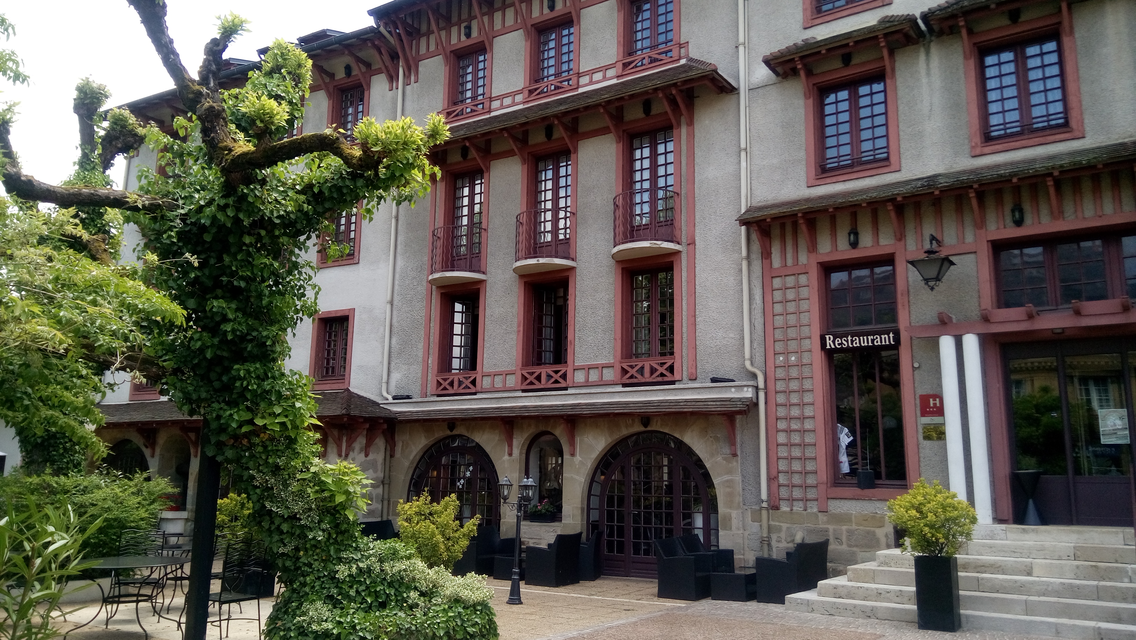 Sous ses airs démodés se cache un hôtel agréable et confortable, idéalement situé en centre ville à quelques pas de la mairie. Buffet du petit dejeunner largement pourvu. Acceuil souriant. Agréable terasse ombragée Restaurant non testé