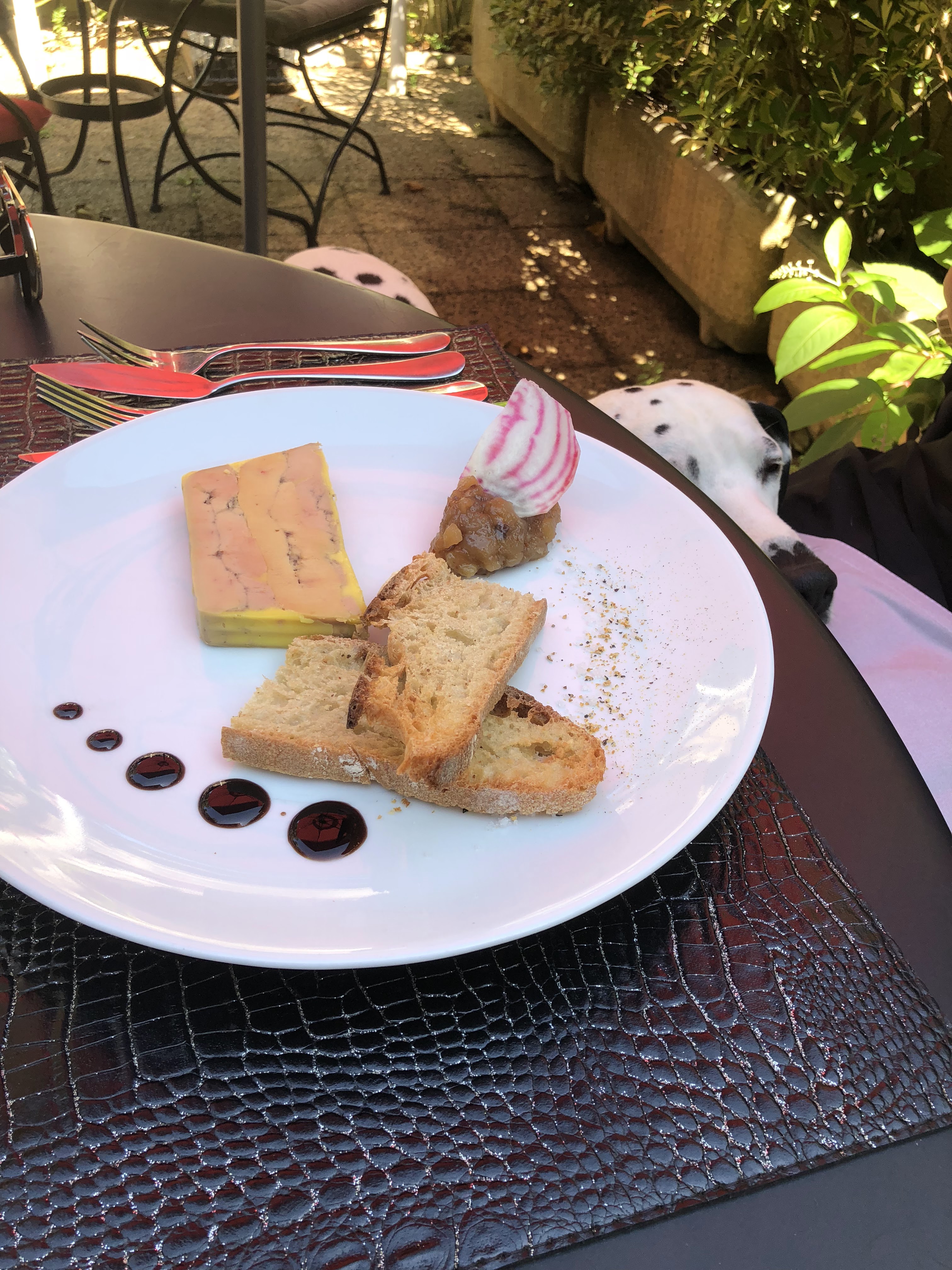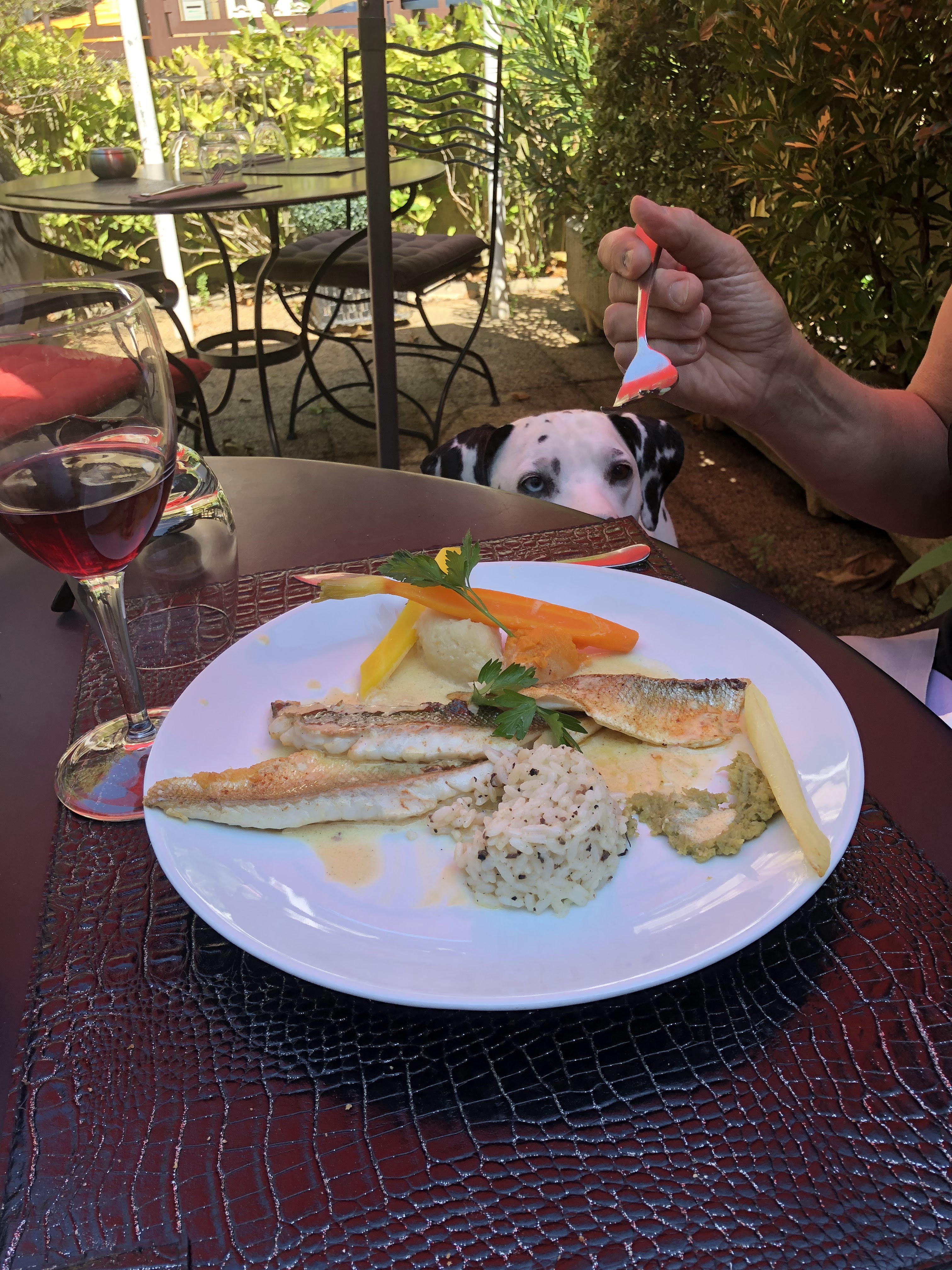 Restaurant bien nommé qui a accepté que je ramène ma truffe noire à la table de mes maîtres. Belle terrasse ombragée. Gamelle d’eau à volonté. Mes maîtres et moi avons passé un excellent moment.