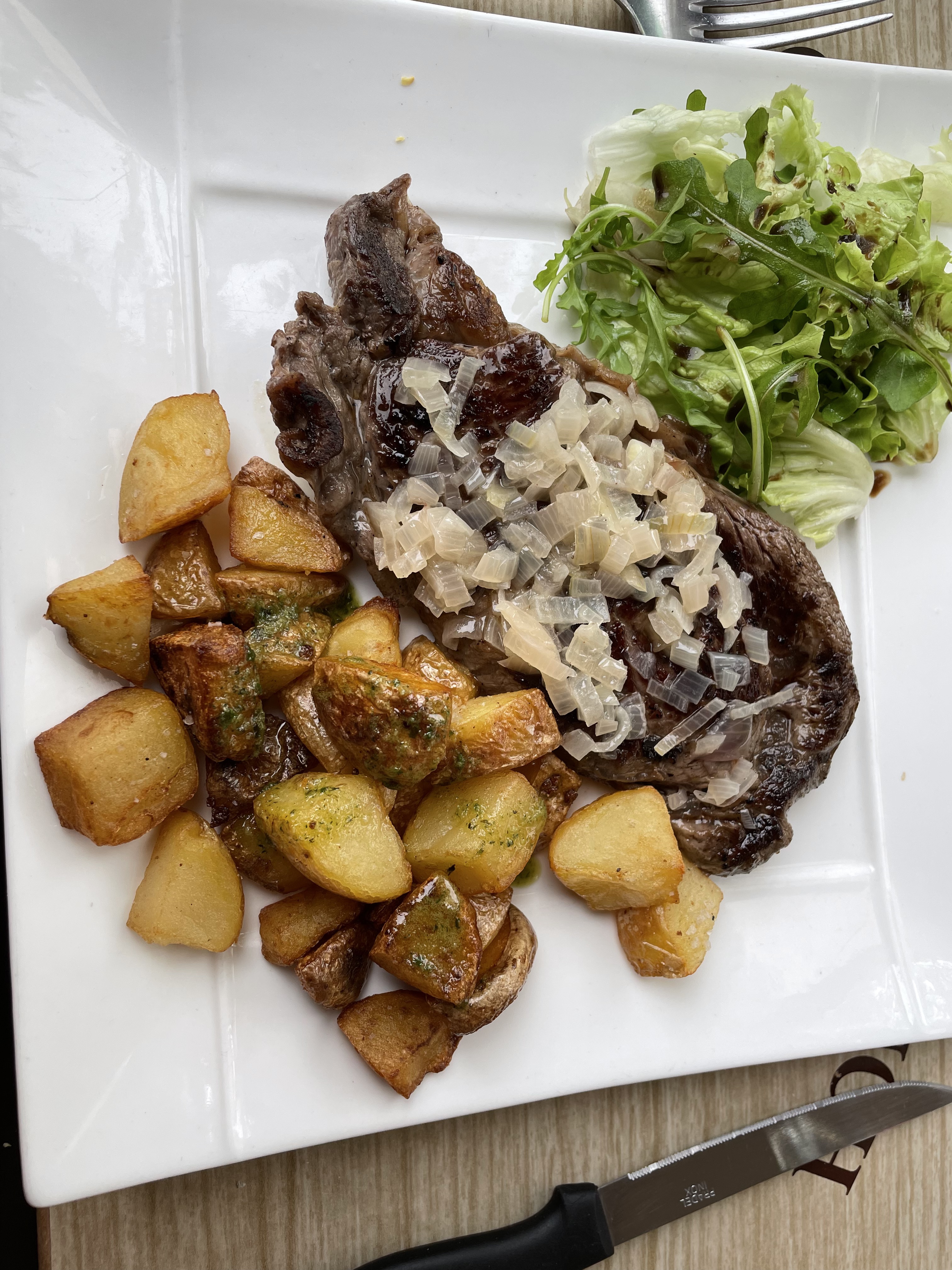 Restaurant classique, mais ouvert, avec une terrasse ombragée et du personnel dynamique (on est arrivés en plein coup de feu 🔥 !). Au menu, filet, entrecôte ou confit, aux pommes de terre et/ou cèpes. Pavé de saumon à l'estragon. Menu enfant. Une étape agréable.