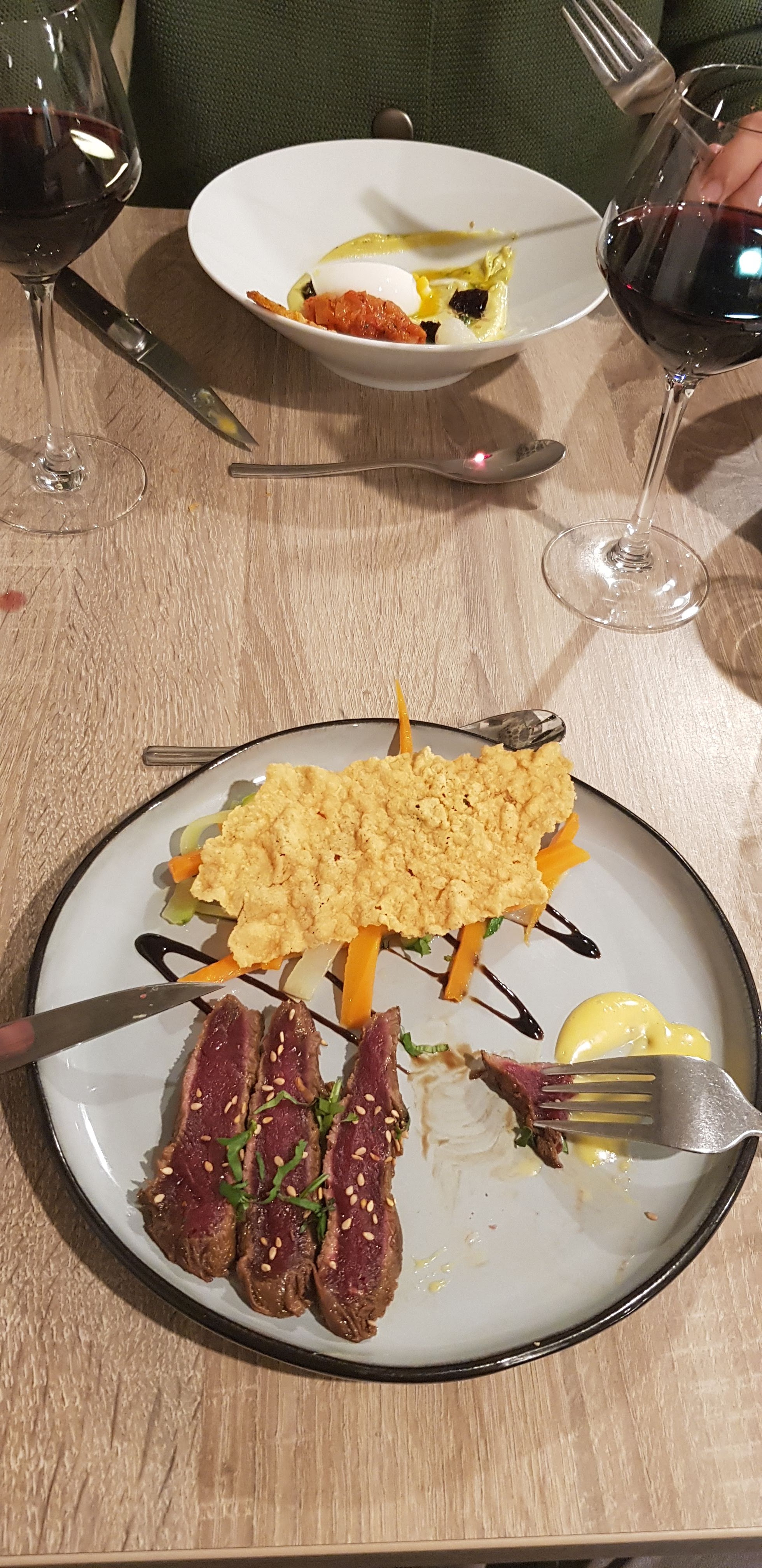Filet de bœuf très tendre un bonheur avec son accompagnement !! Dessert tarte au chocolat yuzu waouh une tuerie ....merci pour cette belle soirée !