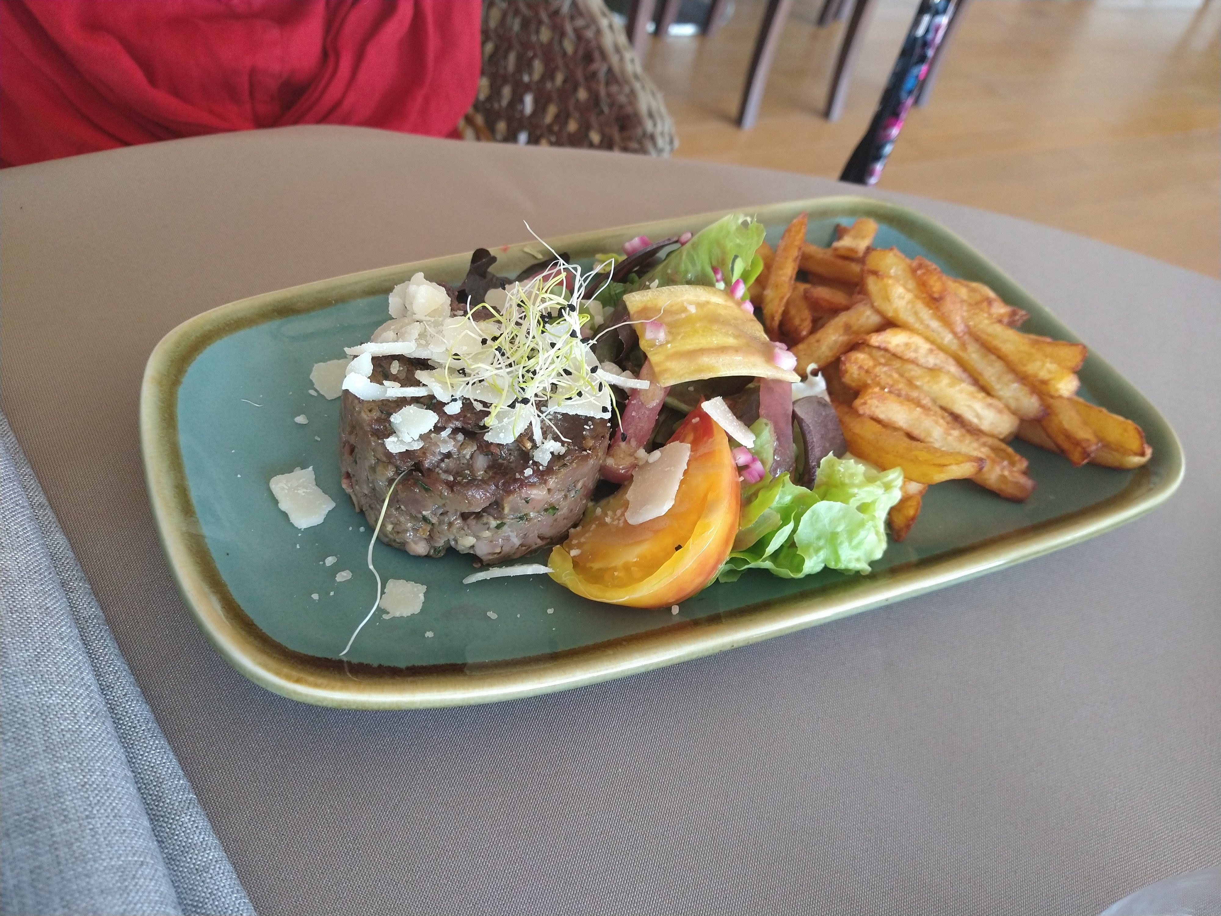 Déjeuner sur le pouce! Quelle belle surprise! Un endroit avec une vue splendide, un accueil au top et un menu à prix tout doux! Et même un menu : tartare de bœuf frites et café gourmand à 13,90 On a passé un super moment! On recommande!!