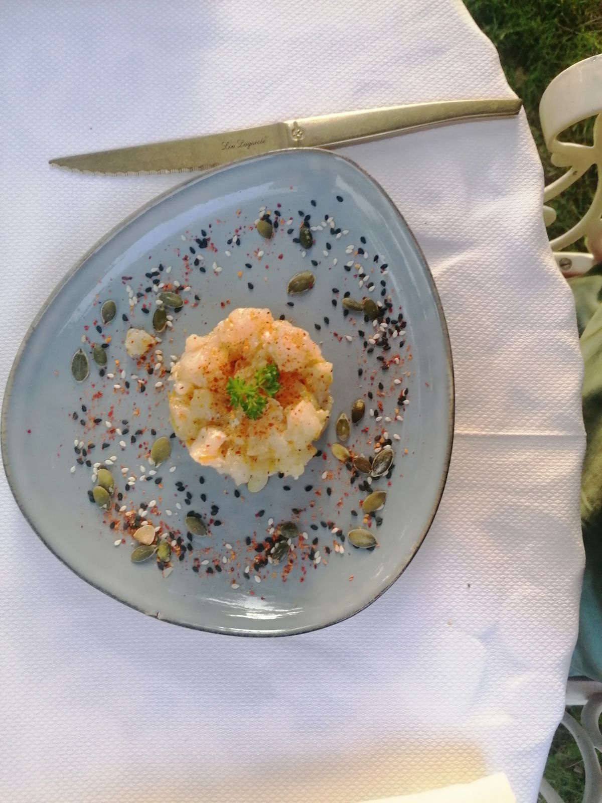 Nourriture cuite à la perfection comme toujours. Cadre de cour charmant. La femme du propriétaire devant la maison et son mari le chef sont très attentifs. Nous sommes allés plusieurs fois dans ce restaurant car nous vivons localement mais il reste notre préféré dans la région.😂