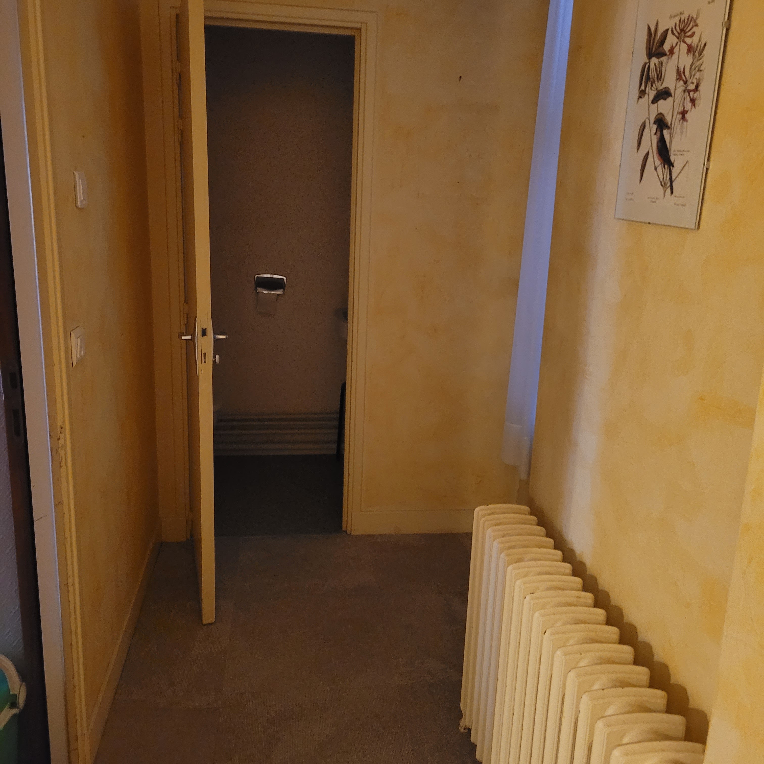 Places dans immeuble annexe hôtel, escaliers, couloir, chambre, salle de bains vieillots qui mériteraient au minimum un coup de peinture, mauvaise insonorisation, situé sur route passante, mais chambre propre, petit parking et personnel correct