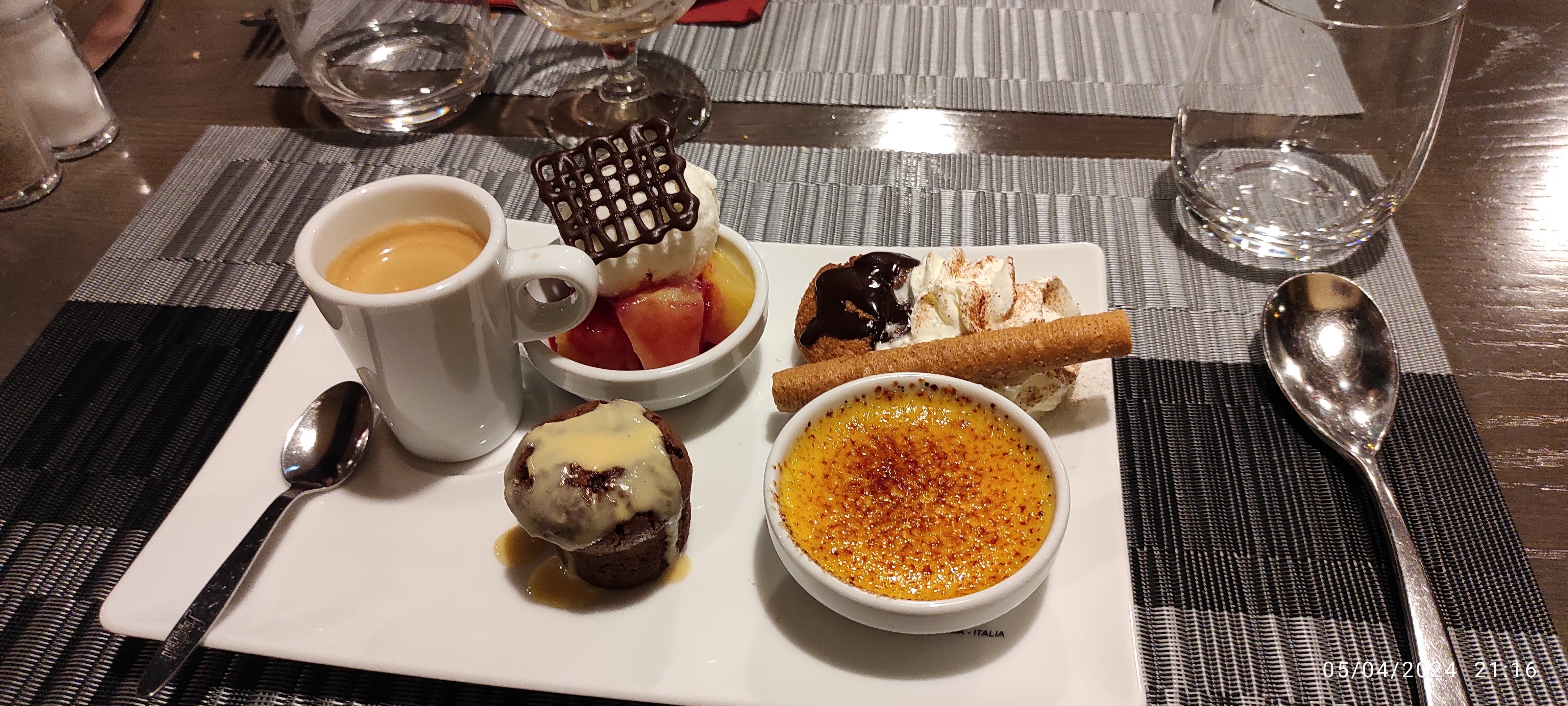 Moyen crèmes brûlée pas cuit, service long pour le nombre de personne dans la salle