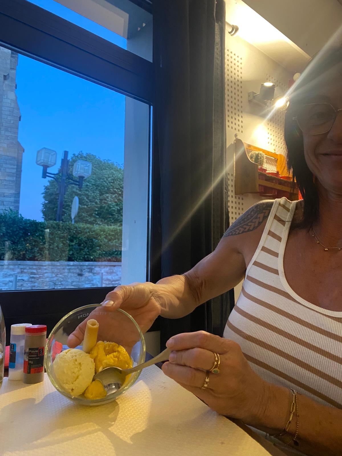 Repas sympa ,pizza 4 fromages assez écœurante ,les glaces excellente, le hamburger une tuerie,pas contre pas le personnel pas accueillant ,froid...