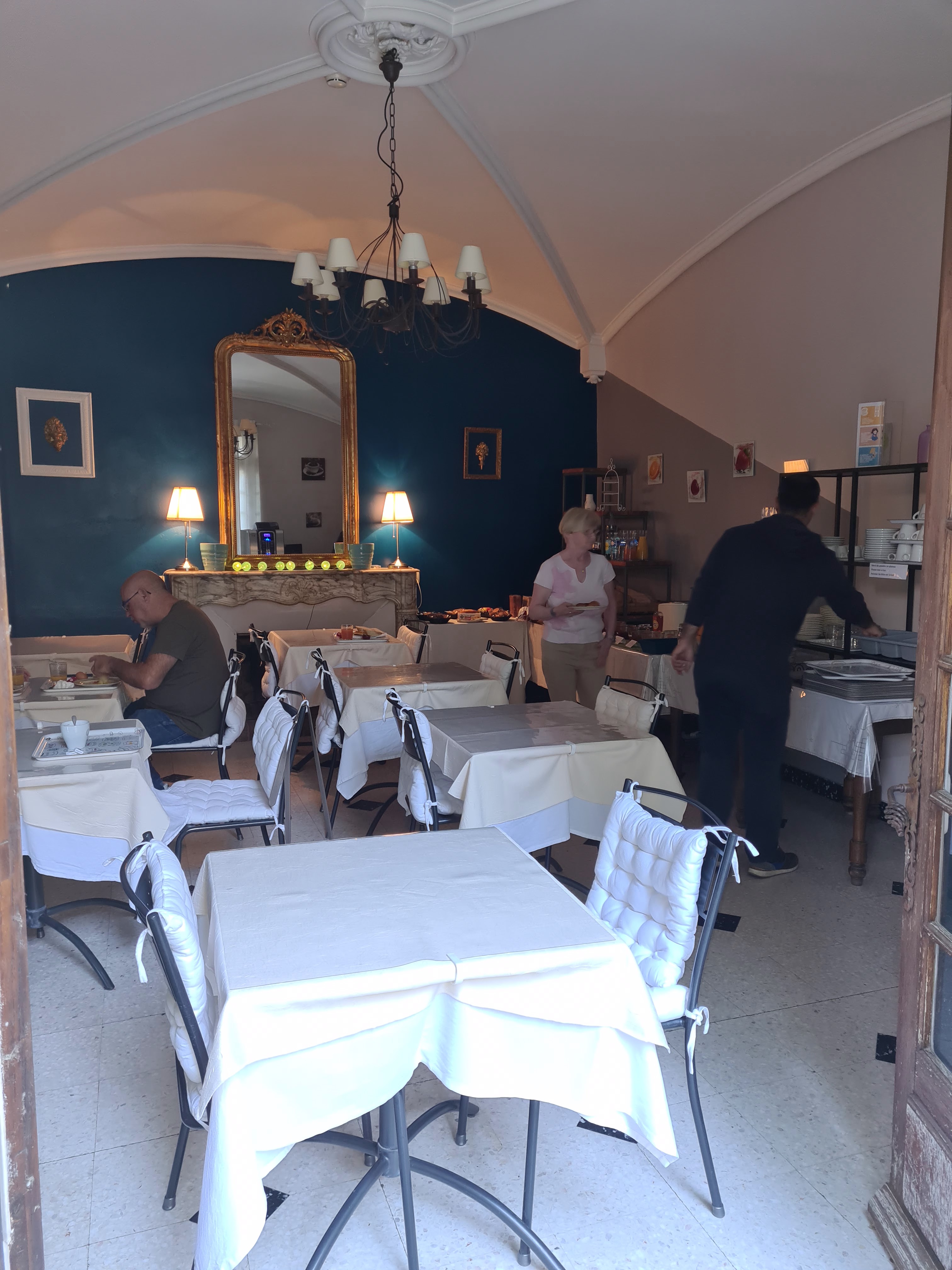 Très beau manoir historique bien entretenu et vénérable. J'ai merveilleusement bien dormi, malgré la chaleur de 42°C à l'extérieur de la maison. Le petit déjeuner était copieux et bon ! L'hôtel se trouve à environ 14 kilomètres d'Orange. Il n'y a pas de bistros, etc. ouverts en ville le lundi.