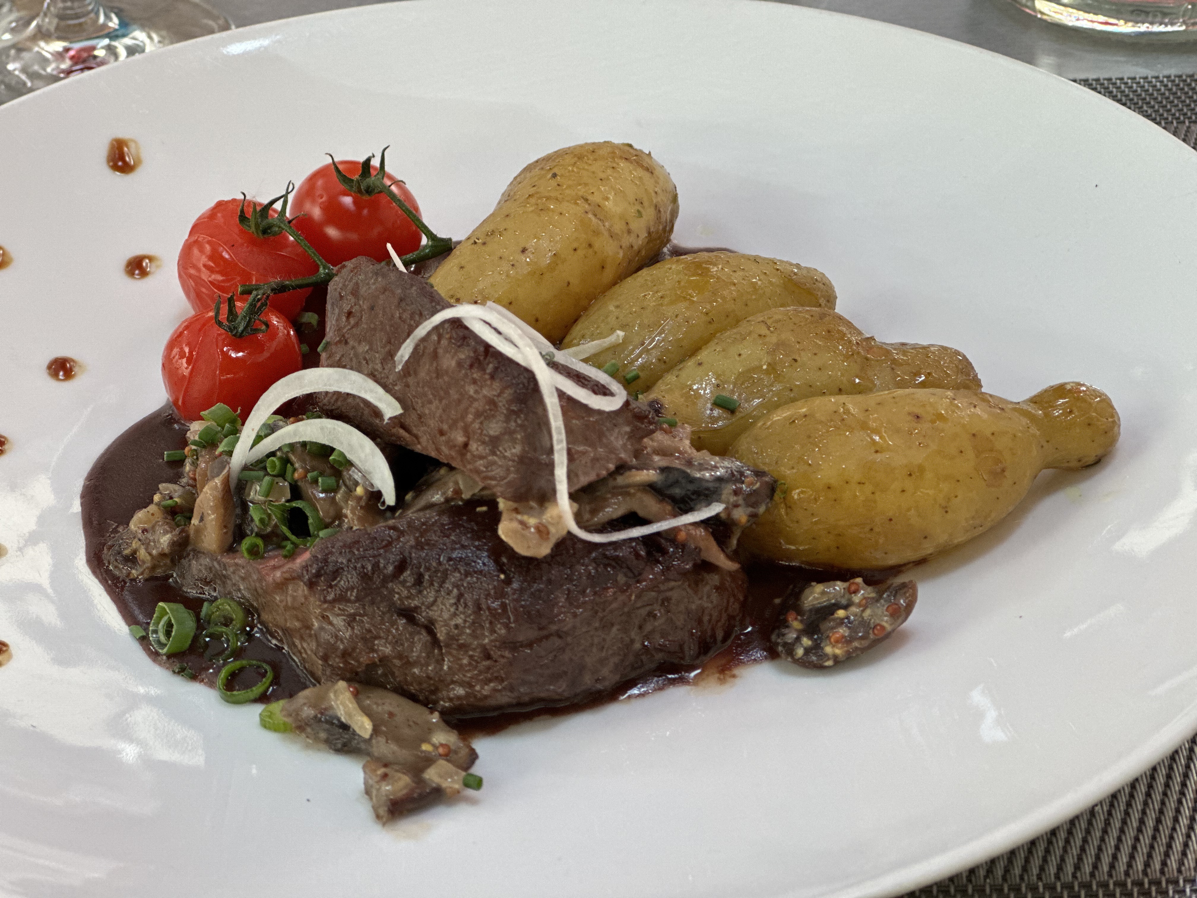 Déçus par le chateaubriand façon Rossini, la viande est bonne mais pour ce tarif nous attendions quelques copeaux de truffes et le petit quelque chose gustatif qui fait que ... C'est bon, sans plus. Nous essaierons un menu la prochaine fois. Le cadre est moderne, agréable. A suivre 😄