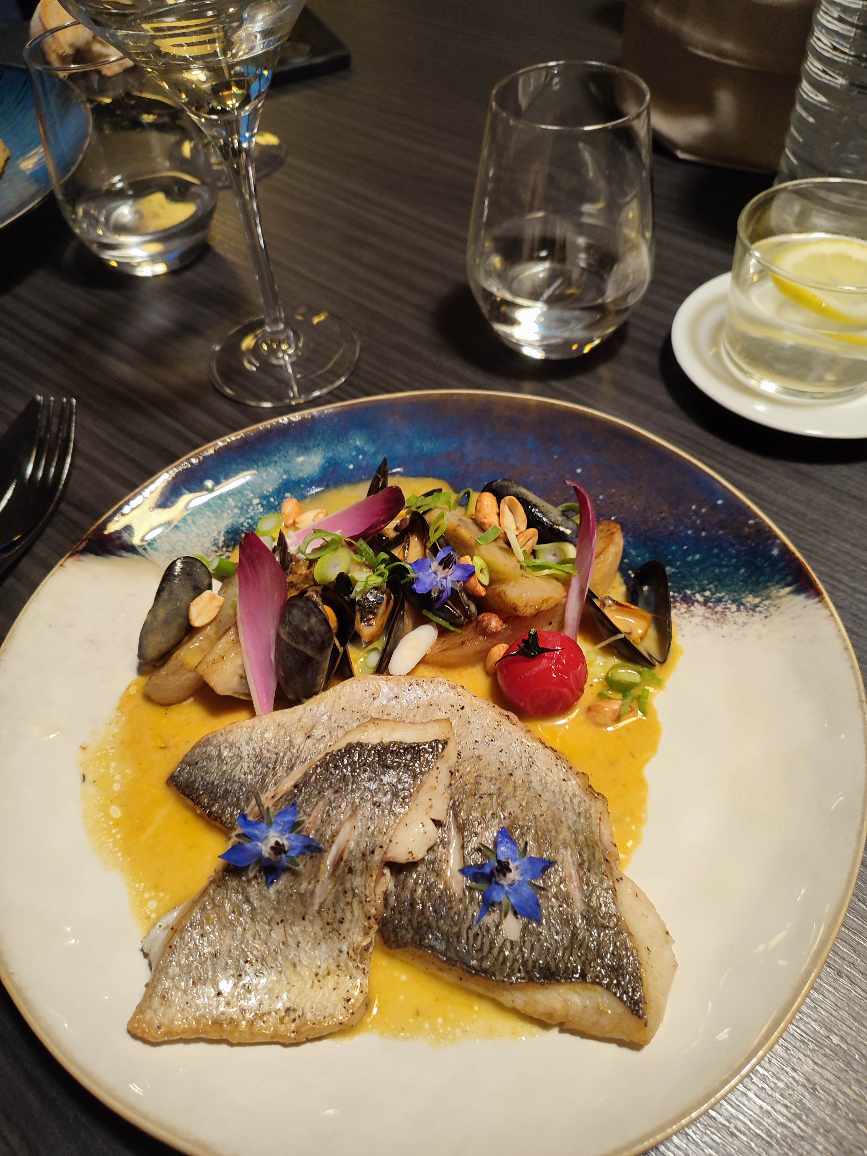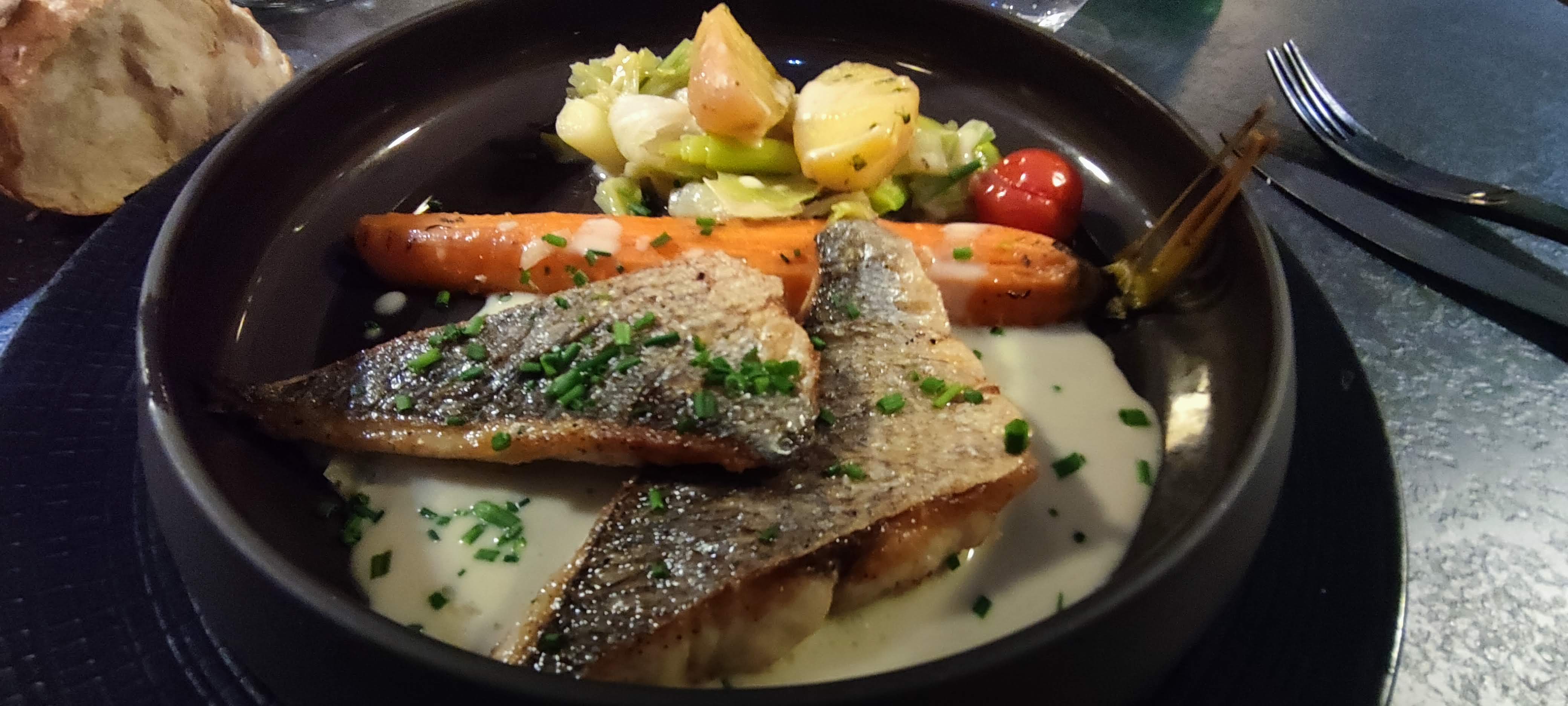 Des mets succulents pour les papilles, particulièrement le bar, divinement préparé et délicieusement accompagné. Je me serais crue au bord de la mer !