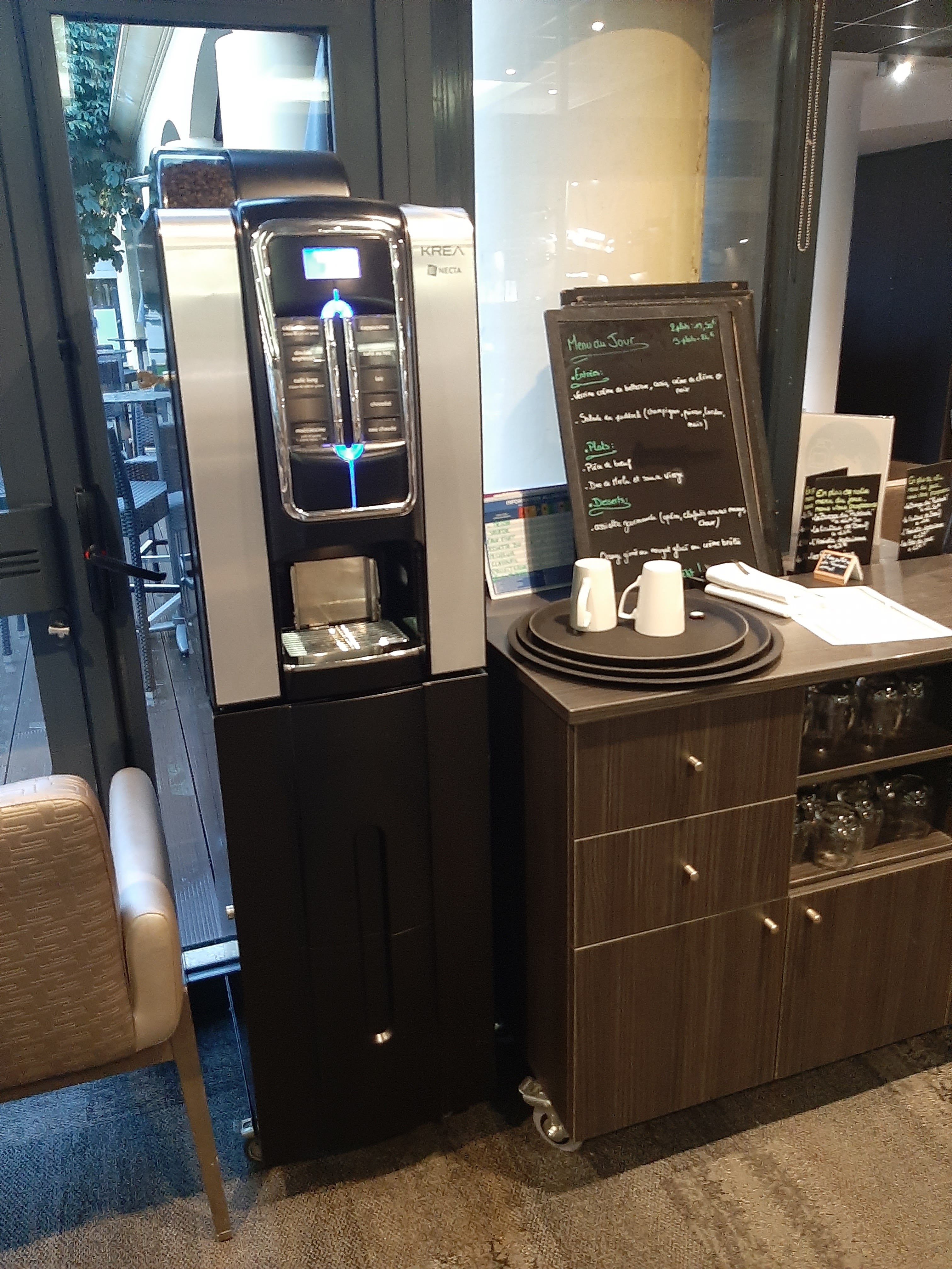 Un peu de calme pour le repas du midi , 1 er jour au top accueil et service , 2ème jour … commande et service compliqué erreur , oublie . Dommage