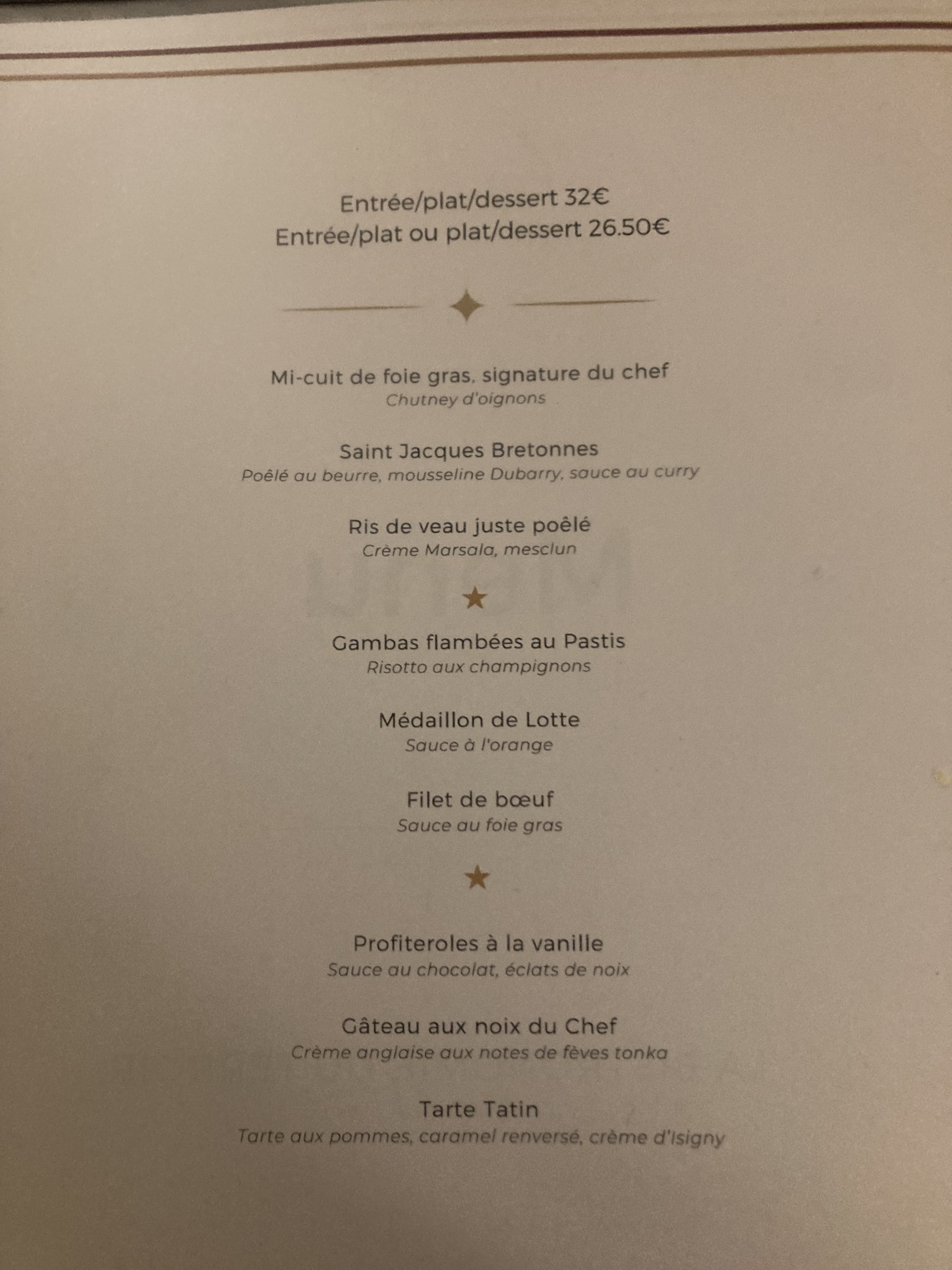Belle vue et bonne nourriture, mais la qualité du fillet de boeuf me parait un peu trop classique pour son prix. Tres bon magré de canard cependant