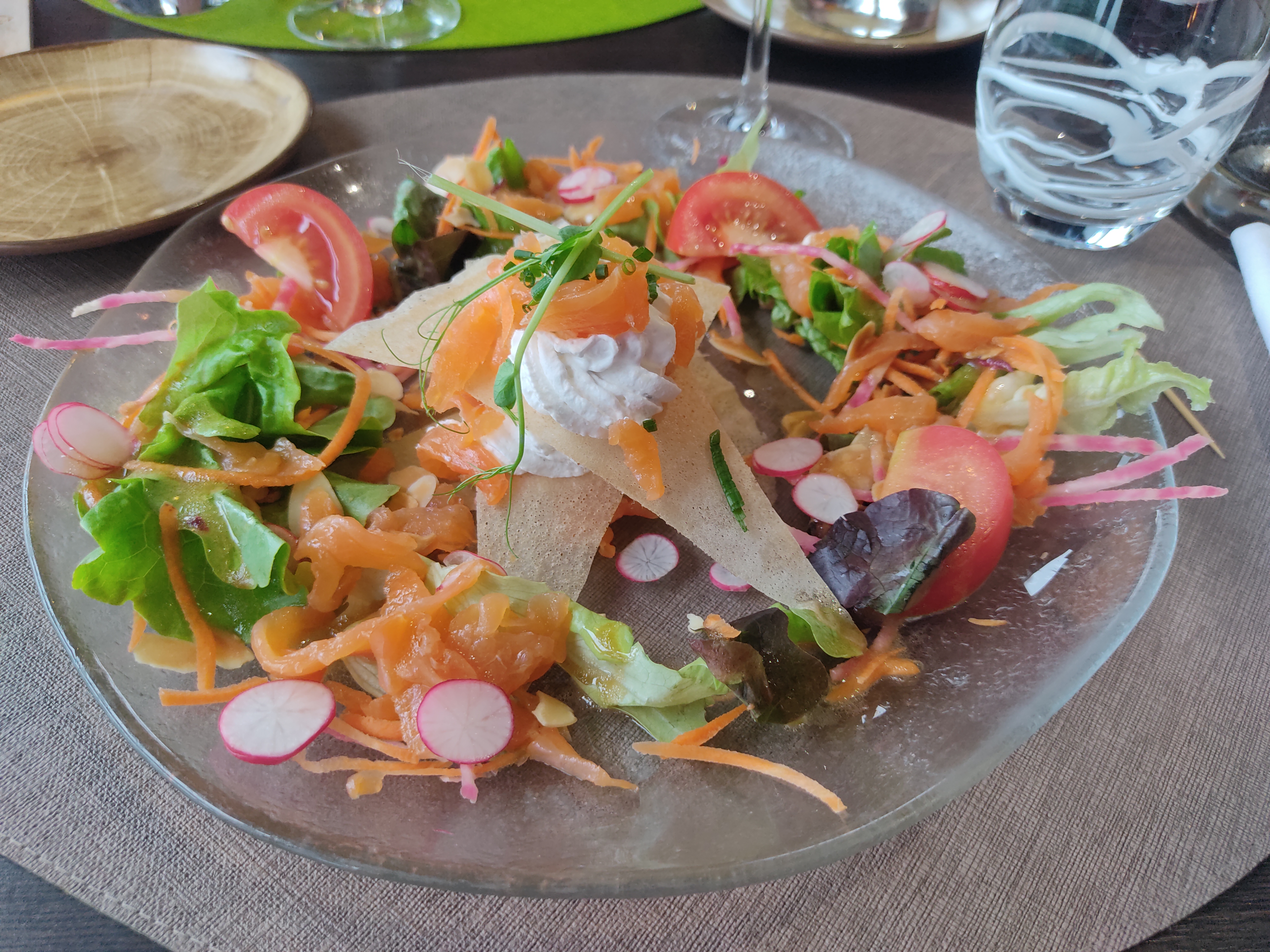 Cadre agréable, grande salle lumineuse, bien insonorisée. Personnel très agréable, service de qualité. Mise en bouche et repas délicieux. Excellent rapport qualité prix. A faire découvrir aux amis dès que possible.